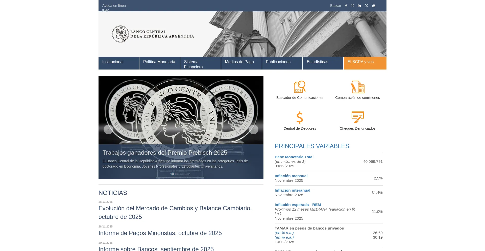 Sitio oficial del Banco Central de la República Argentina, entidad autárquica del Estado Nacional. Promueve la estabilidad monetaria y financiera, el empleo y desarrollo e...