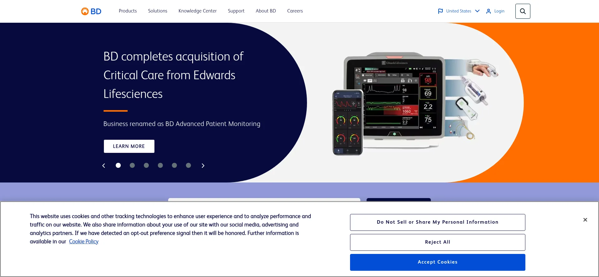The website implements cookie consent mechanisms in compliance with privacy regulations such as GDPR or CCPA. This demonstrates that bd.com adheres to data protection standards and provides users with control over personal data collection practices.