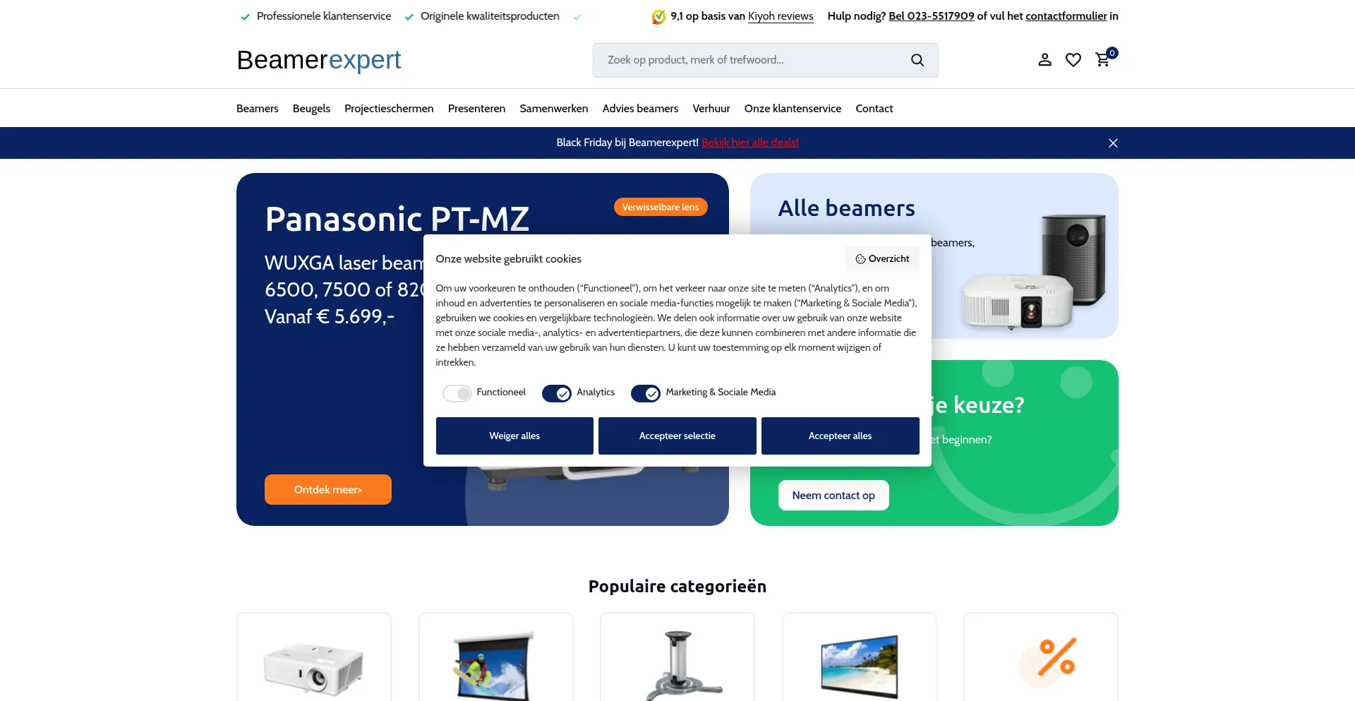 The website implements cookie consent mechanisms in compliance with privacy regulations such as GDPR or CCPA. This demonstrates that beamerexpert.nl adheres to data protection standards and provides users with control over personal data collection practices.