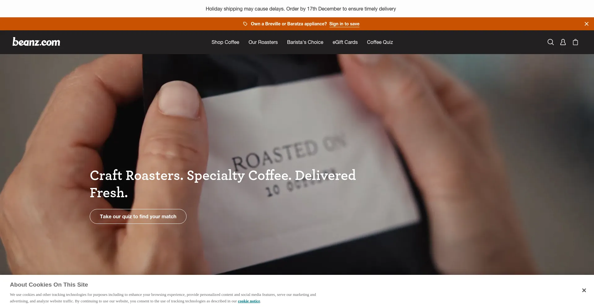 The website implements cookie consent mechanisms in compliance with privacy regulations such as GDPR or CCPA. This demonstrates that beanz.com adheres to data protection standards and provides users with control over personal data collection practices.
