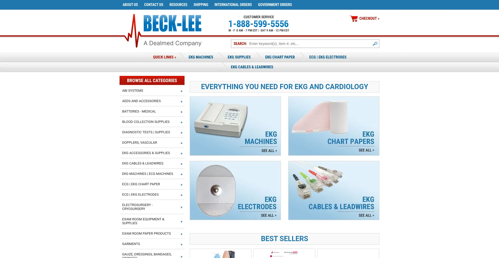 Beck-Lee is a trusted provider of Cardiology Supplies including EKG Electrodes, ECG Chart Paper, EKG Patient Cables, ECG Machines, and much more. Visit us for a pleasant experie...