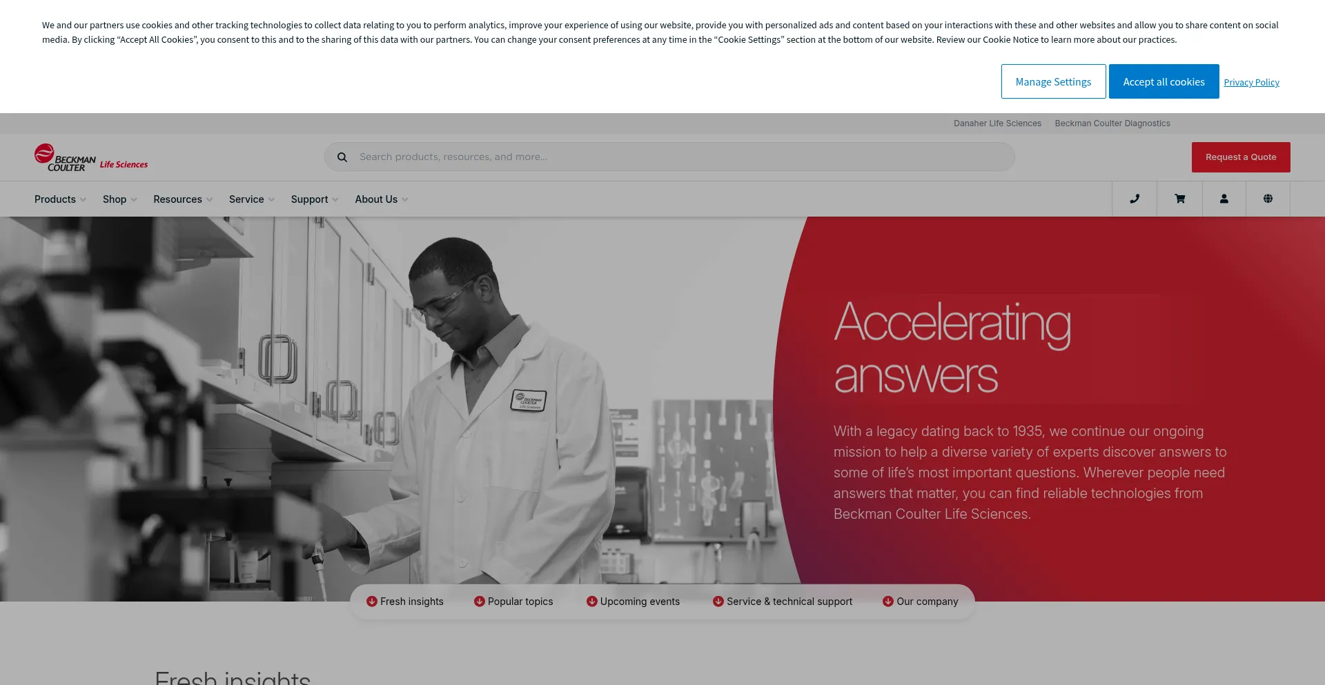 The website implements cookie consent mechanisms in compliance with privacy regulations such as GDPR or CCPA. This demonstrates that beckman.com adheres to data protection standards and provides users with control over personal data collection practices.