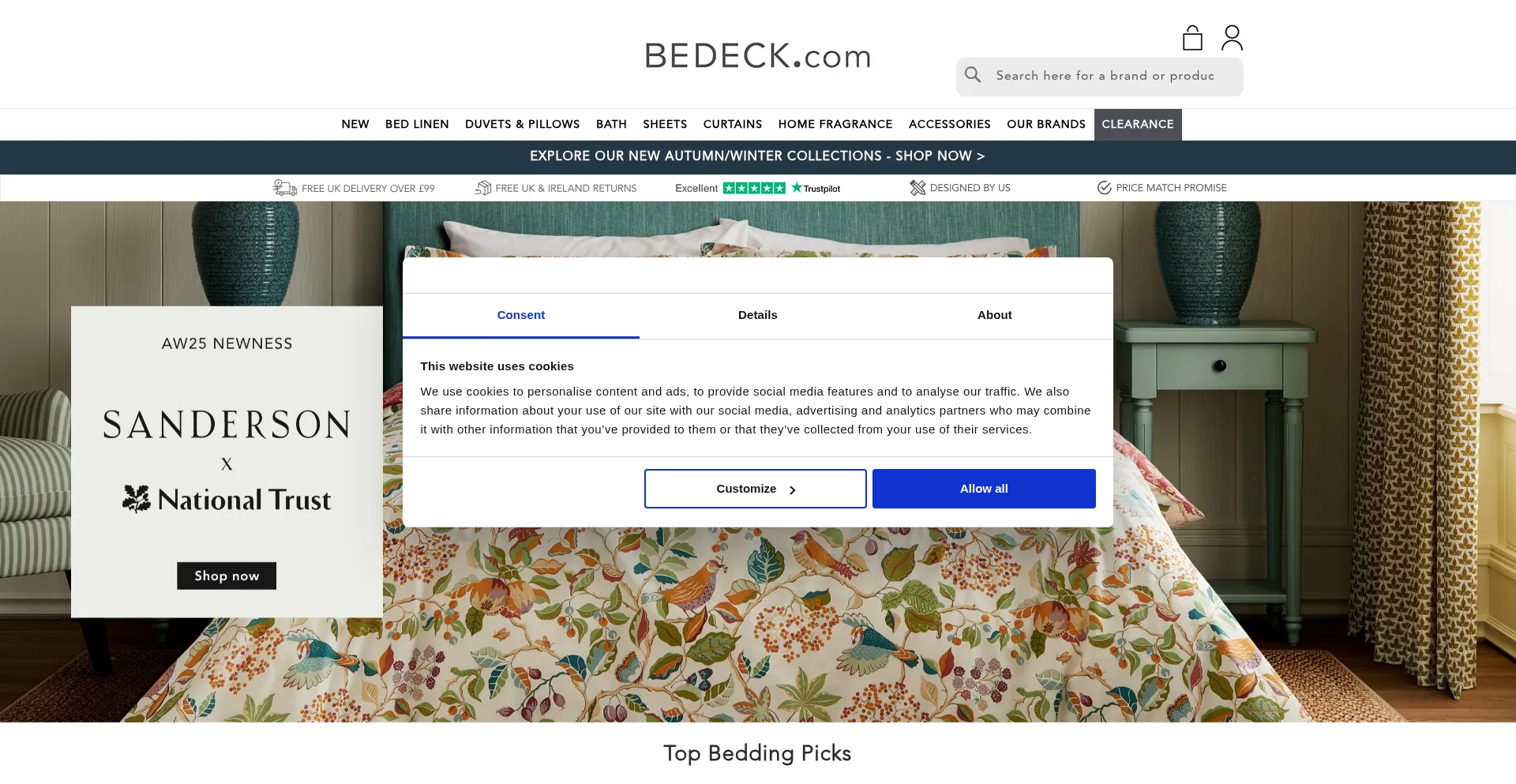 The website implements cookie consent mechanisms in compliance with privacy regulations such as GDPR or CCPA. This demonstrates that bedeck.com adheres to data protection standards and provides users with control over personal data collection practices.