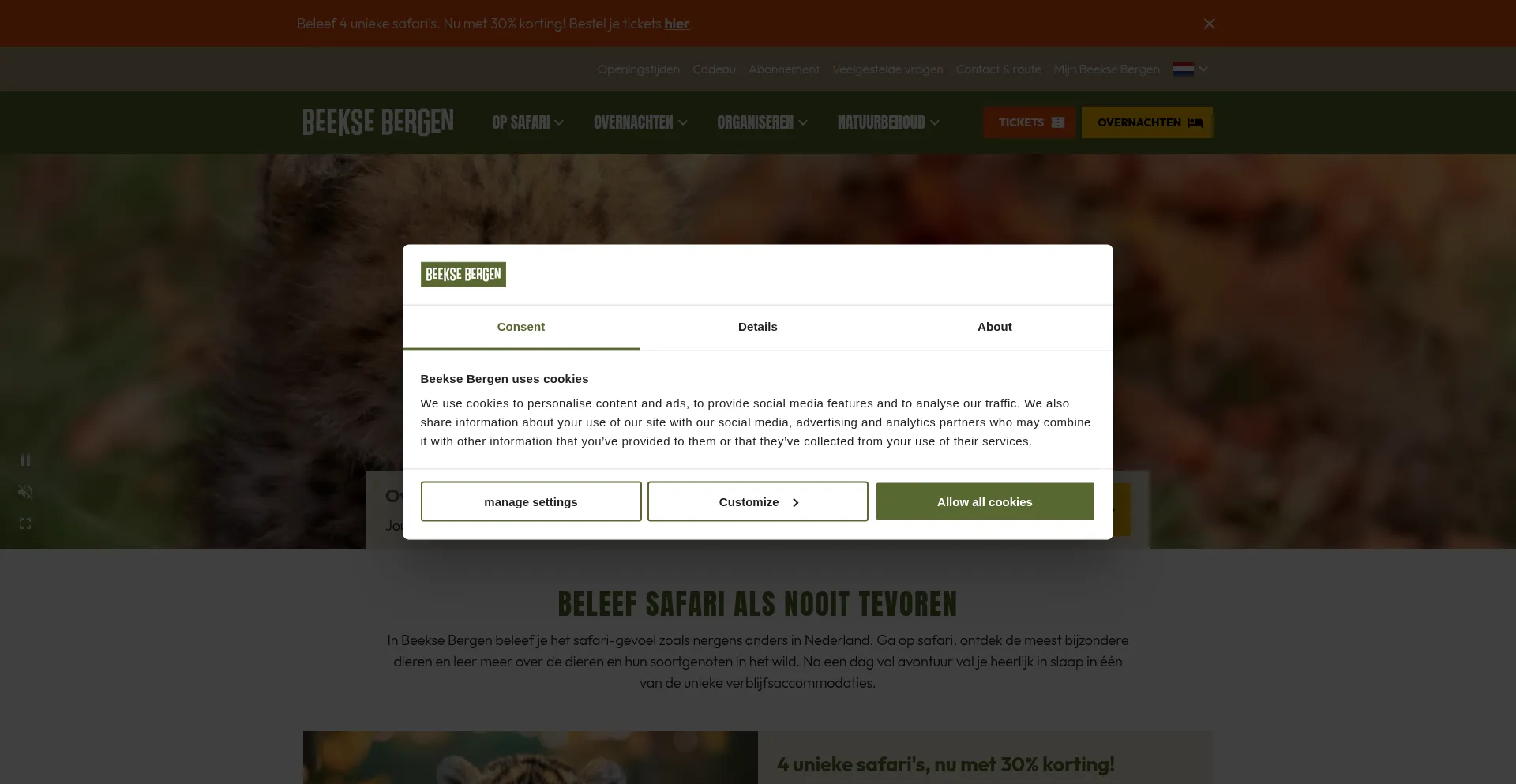 The website implements cookie consent mechanisms in compliance with privacy regulations such as GDPR or CCPA. This demonstrates that beeksebergen.nl adheres to data protection standards and provides users with control over personal data collection practices.