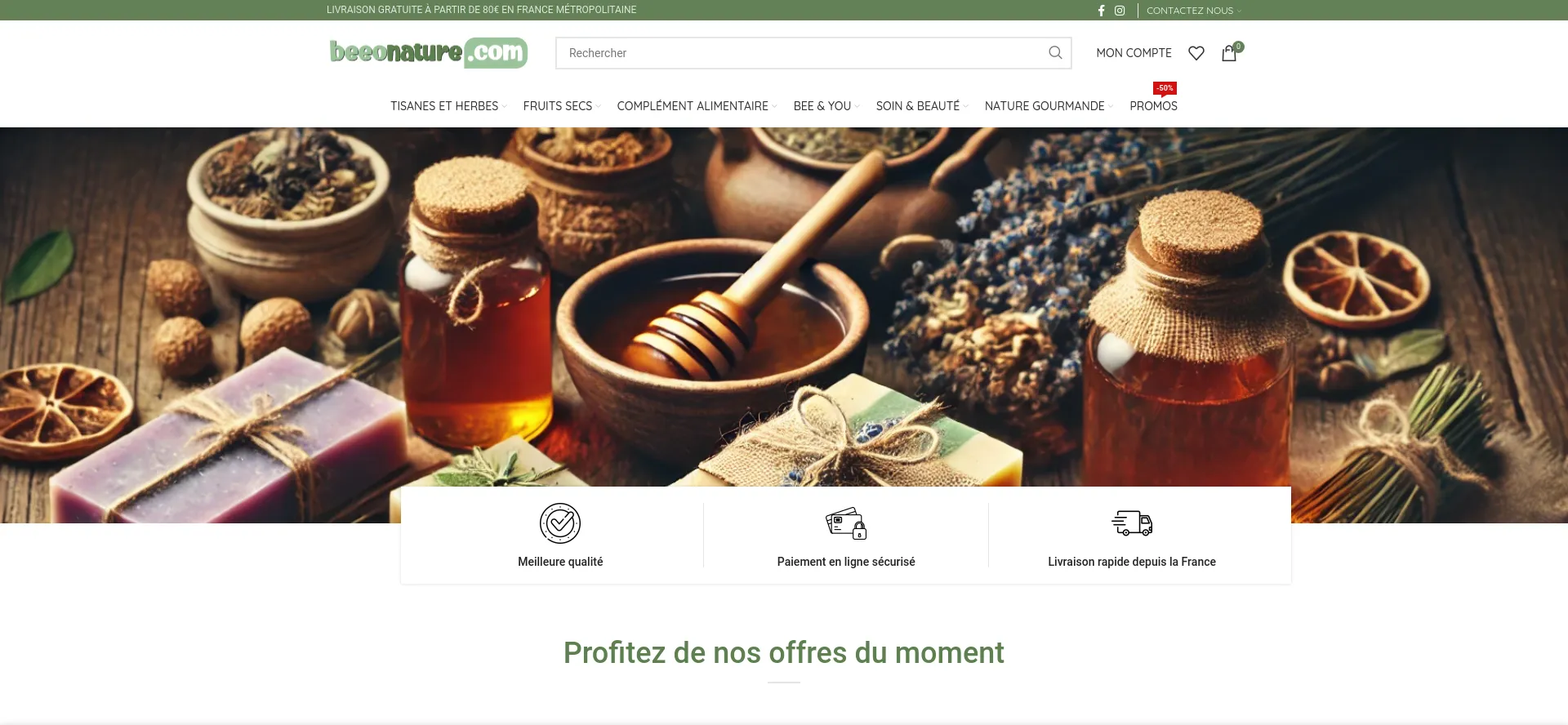 Beeonature.com vous propose des complément alimentaire, Bee&You produit apicoles, tisanes, huiles bien-être, fruits secs, cosmétiques