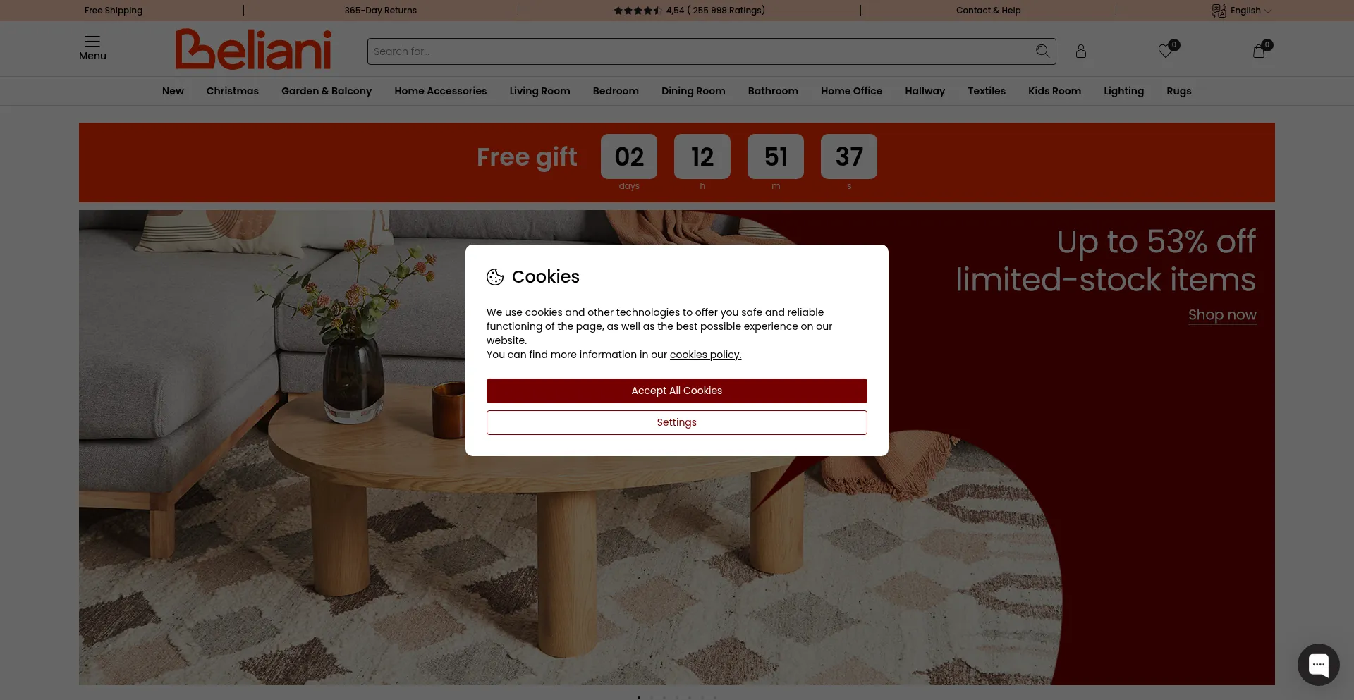 The website implements cookie consent mechanisms in compliance with privacy regulations such as GDPR or CCPA. This demonstrates that beliani.no adheres to data protection standards and provides users with control over personal data collection practices.