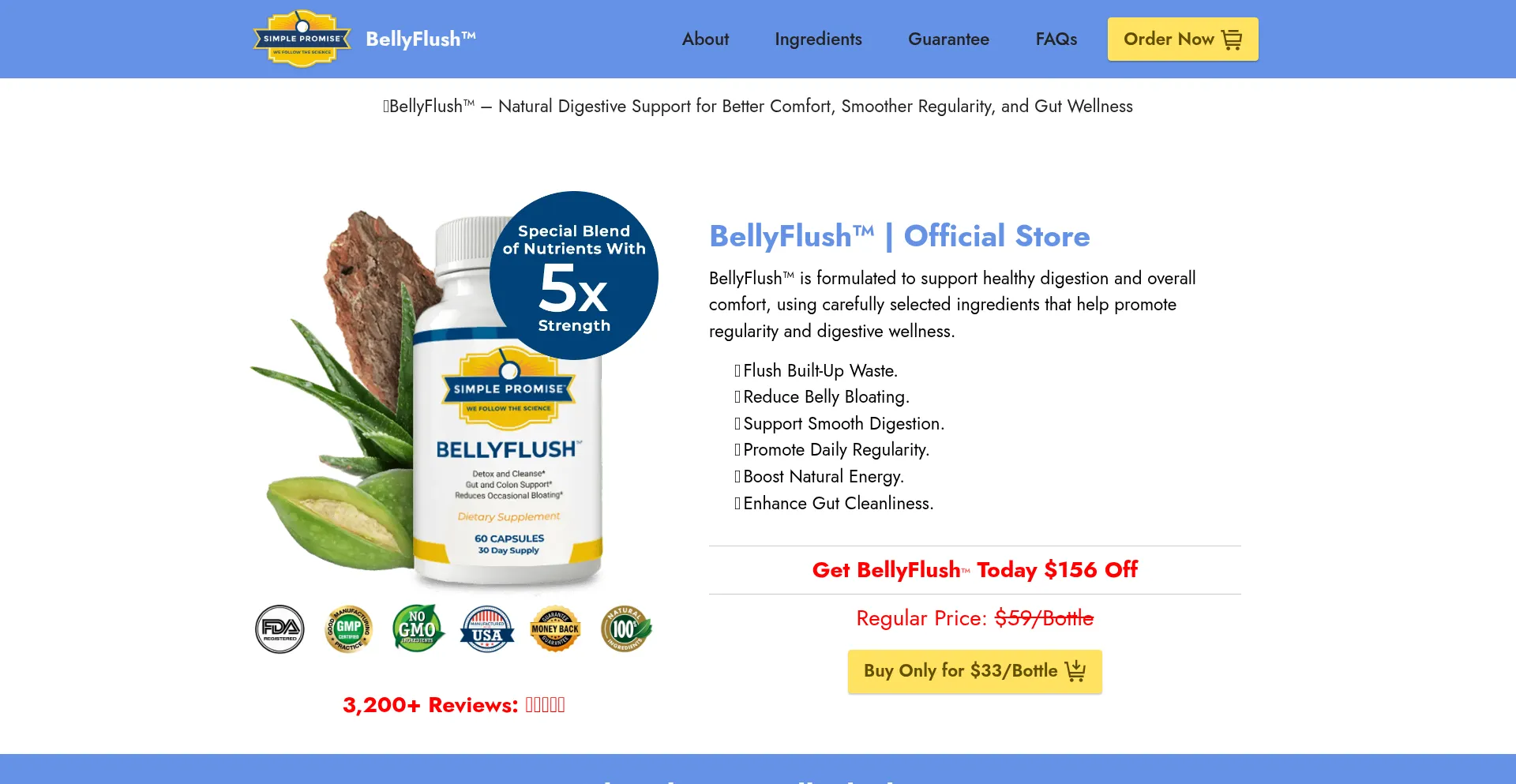 BellyFlush is formulated to support healthy digestion and overall comfort, using carefully selected ingredients that help promote regularity and digestive wellness.