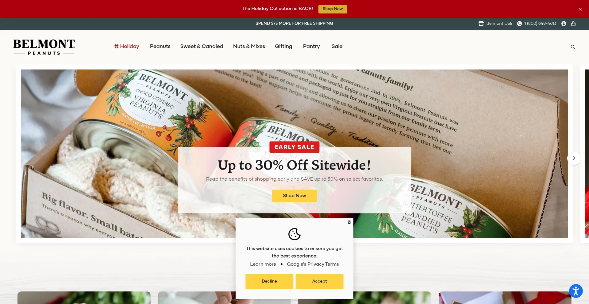 The website implements cookie consent mechanisms in compliance with privacy regulations such as GDPR or CCPA. This demonstrates that belmontpeanuts.com adheres to data protection standards and provides users with control over personal data collection practices.