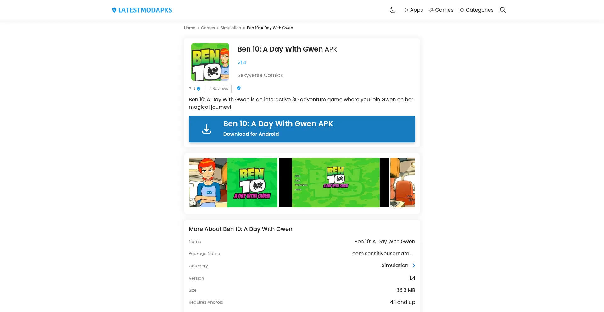 Ben-10-a-day-with-gwen.latestmodapks.com Website Review