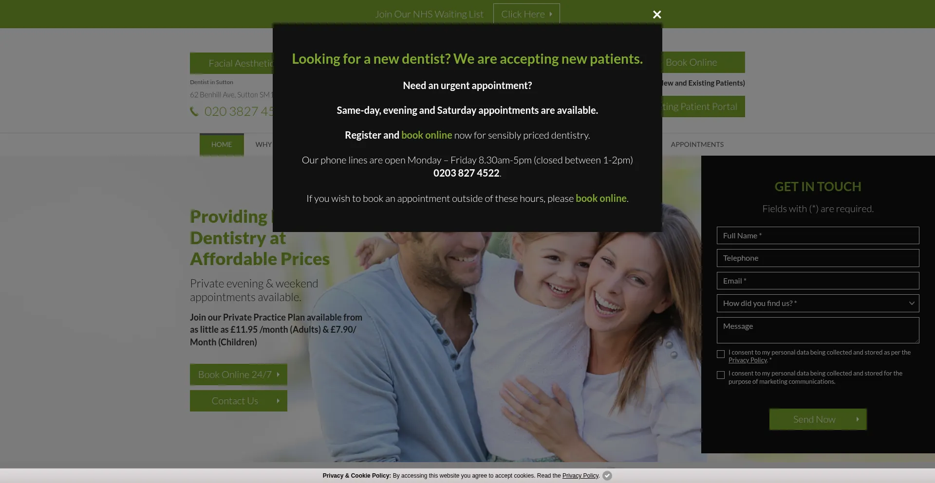 The benhill-dental-practice.co.uk website implements data collection forms requesting personal information including names, email addresses, phone numbers, or other sensitive details. Users should verify the legitimacy of it and review privacy policies before submitting personal data.