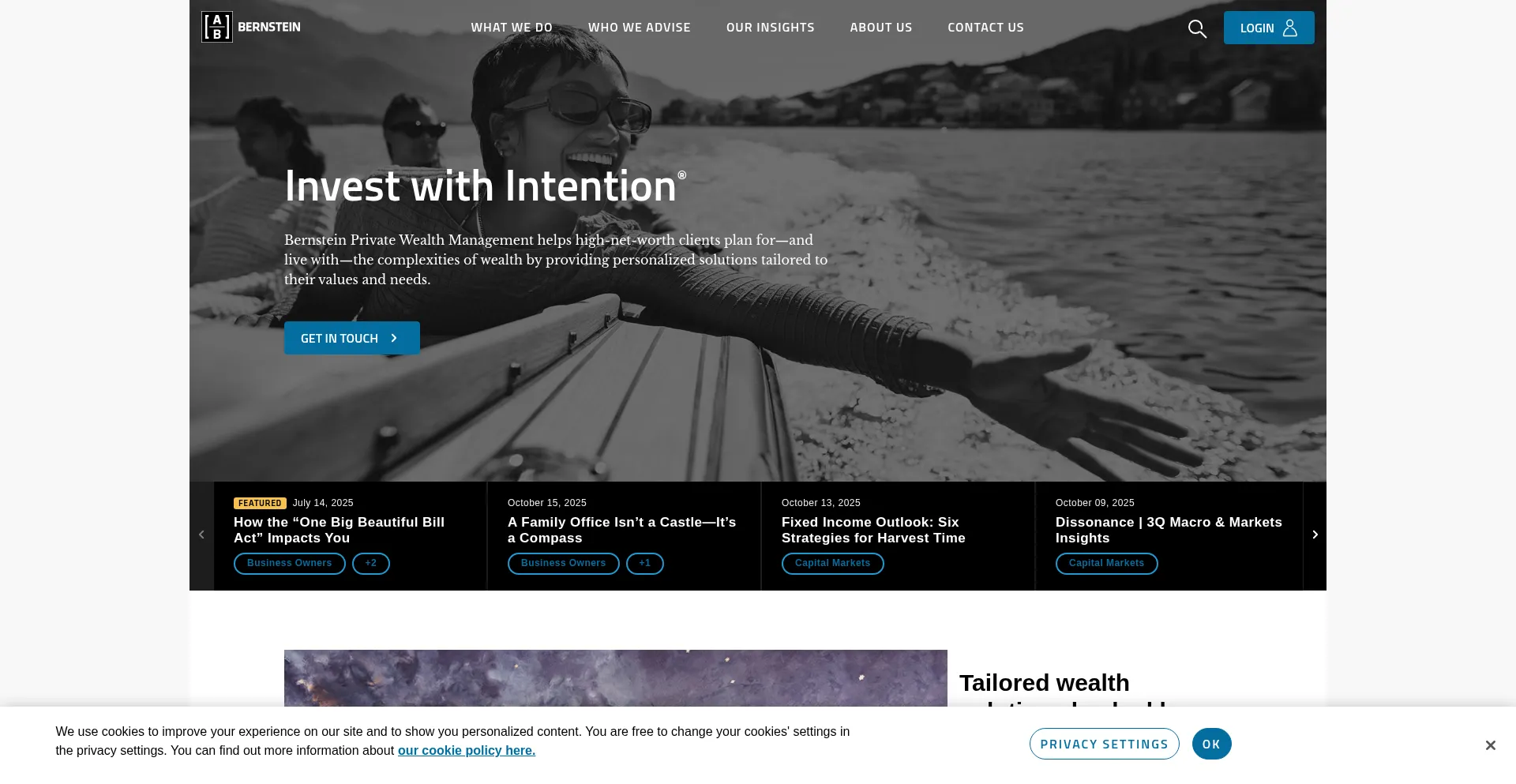 The website implements cookie consent mechanisms in compliance with privacy regulations such as GDPR or CCPA. This demonstrates that bernstein.com adheres to data protection standards and provides users with control over personal data collection practices.