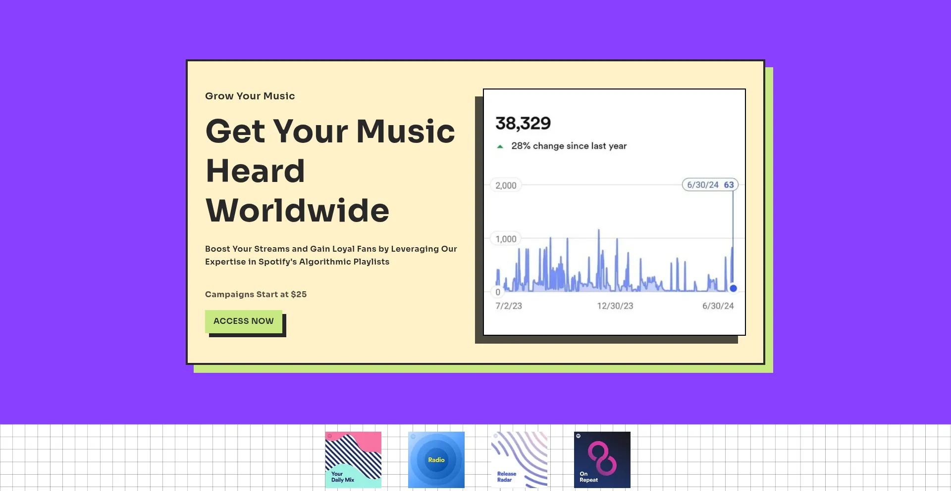 Land on top playlists like Discovery Weekly, Release Radar, and Radio.