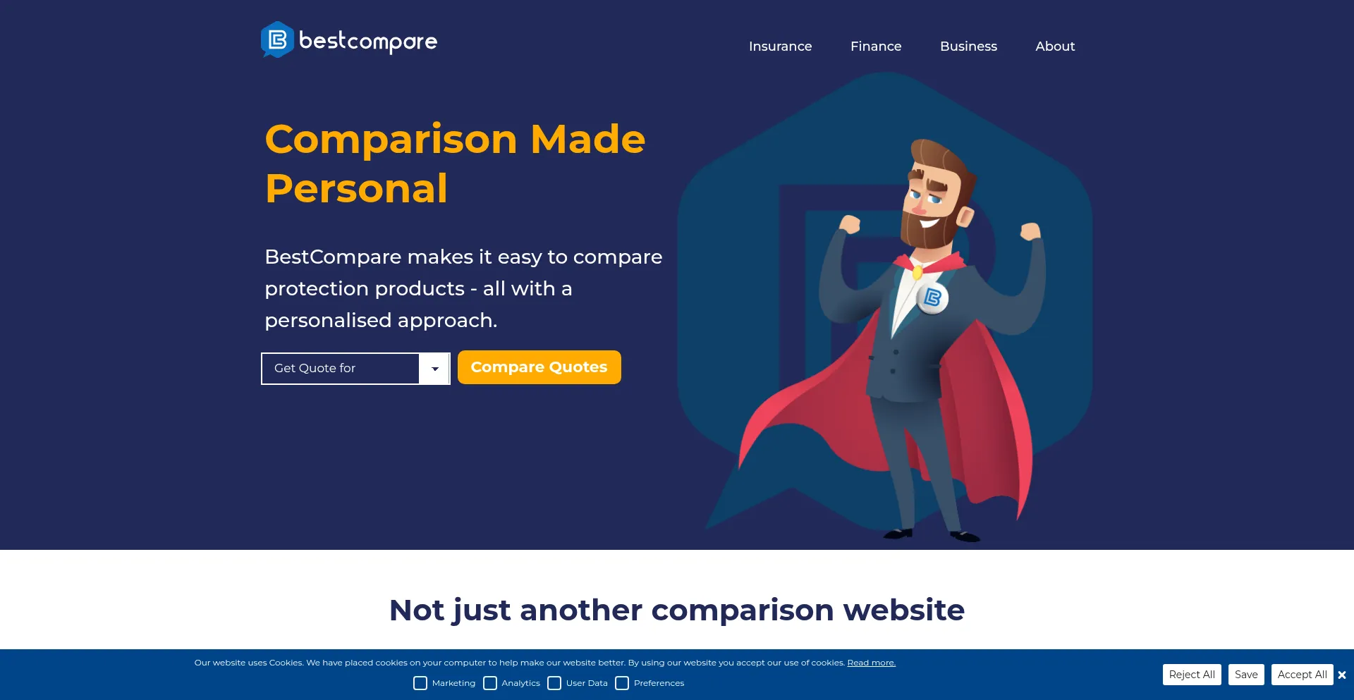 The bestcompare.com website uses Google Tag Manager to add and update tracking tags on its website.