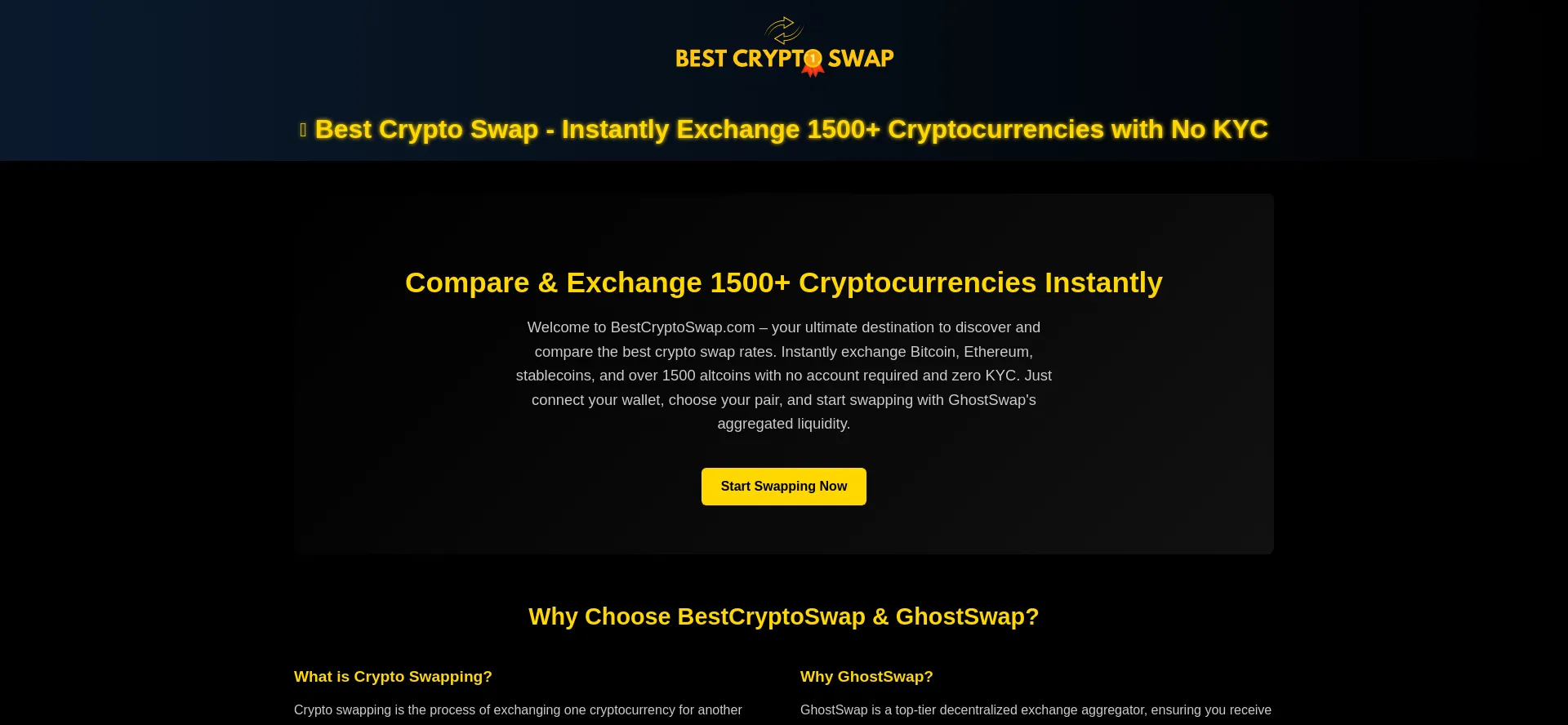 BestCryptoSwap.com - Instantly Exchange 1500+ Cryptocurrencies with No Account or KYC