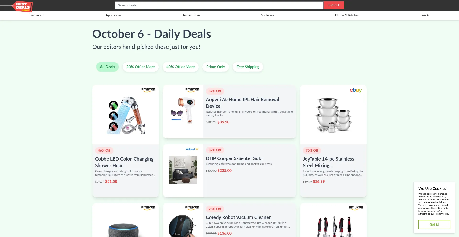 The website implements cookie consent mechanisms in compliance with privacy regulations such as GDPR or CCPA. This demonstrates that bestdeals.today adheres to data protection standards and provides users with control over personal data collection practices.