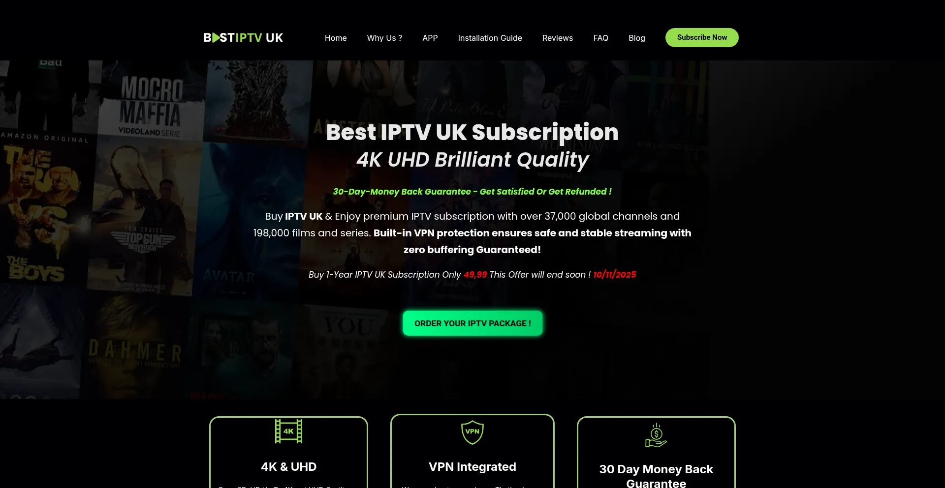 Buy IPTV UK 2025 , IPTV Subscription with Over 244,000 Channels & VOD 4K , No Buffering Guaranteed, Easy Setup ! VPN Built In.
