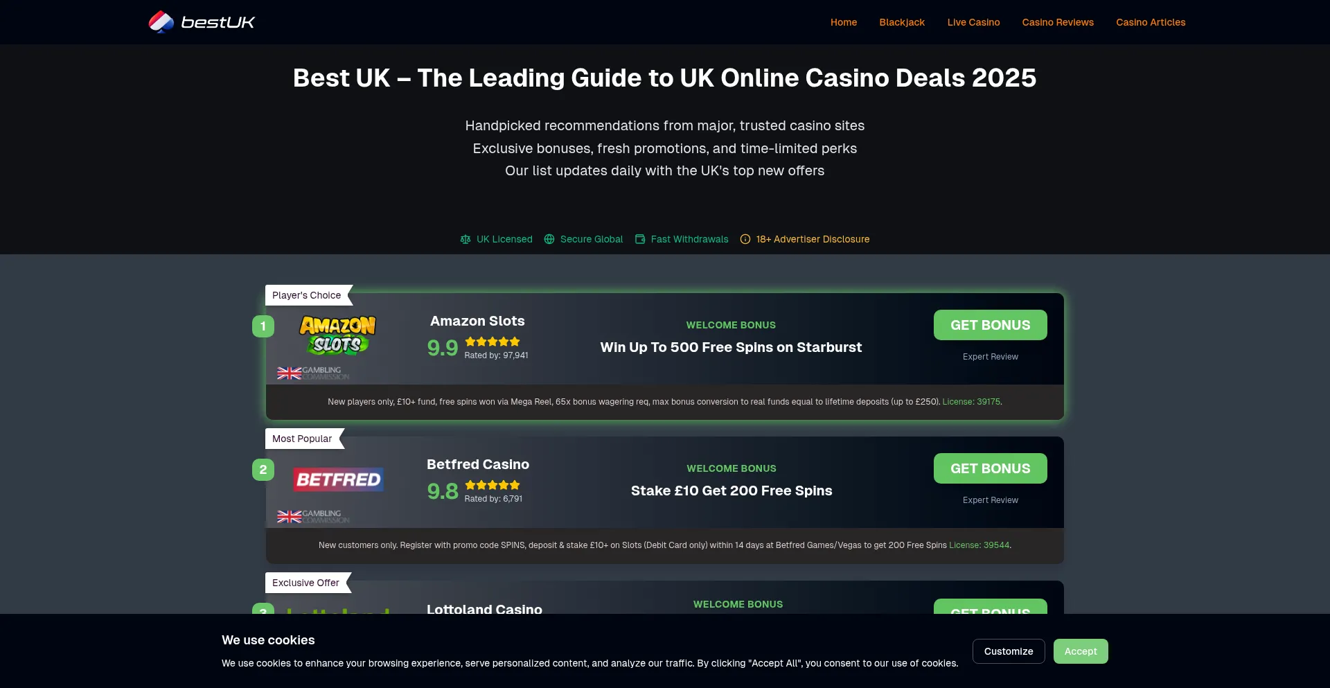 Discover the best online offers, bonuses, and deals all in one place. Save money and find top-rated promotions handpicked for you at Best UK Casino.