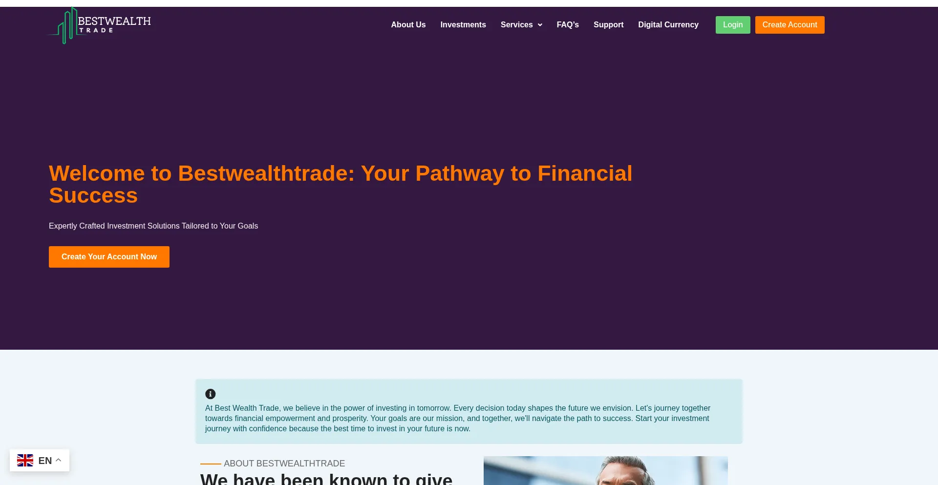 The bestwealthtrade.com website provides financial services including investment management, wealth advisory, or financial planning solutions. Services may encompass portfolio management, investment opportunities, financial consulting, or asset growth strategies for individual and institutional clients.