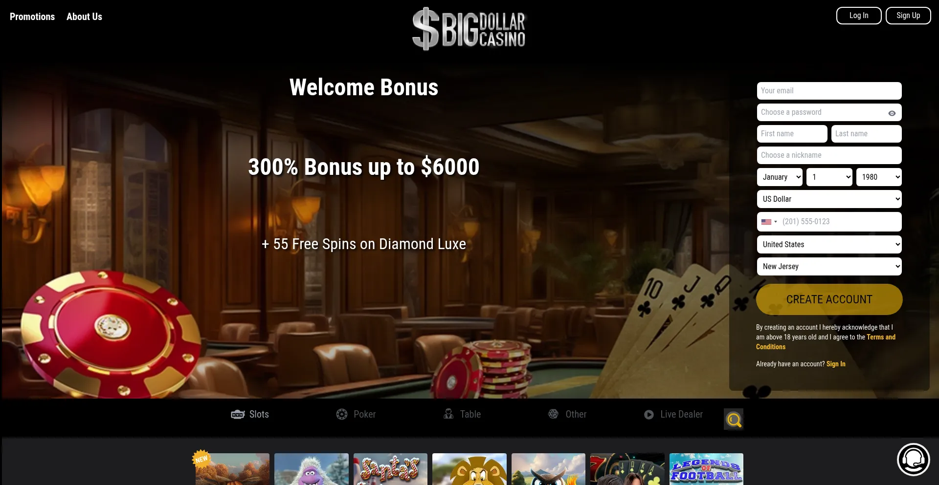 Big Dollar Online Casino - 300% MB up to $6000 + 55 Free Spins