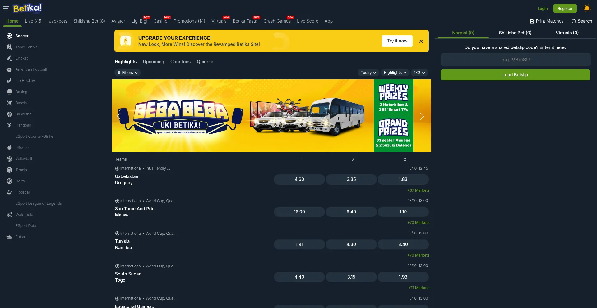 Bet on soccer easily and securely with Betika, view soccer betting odds and place your soccer bets online. Instant cashback bonuses.
