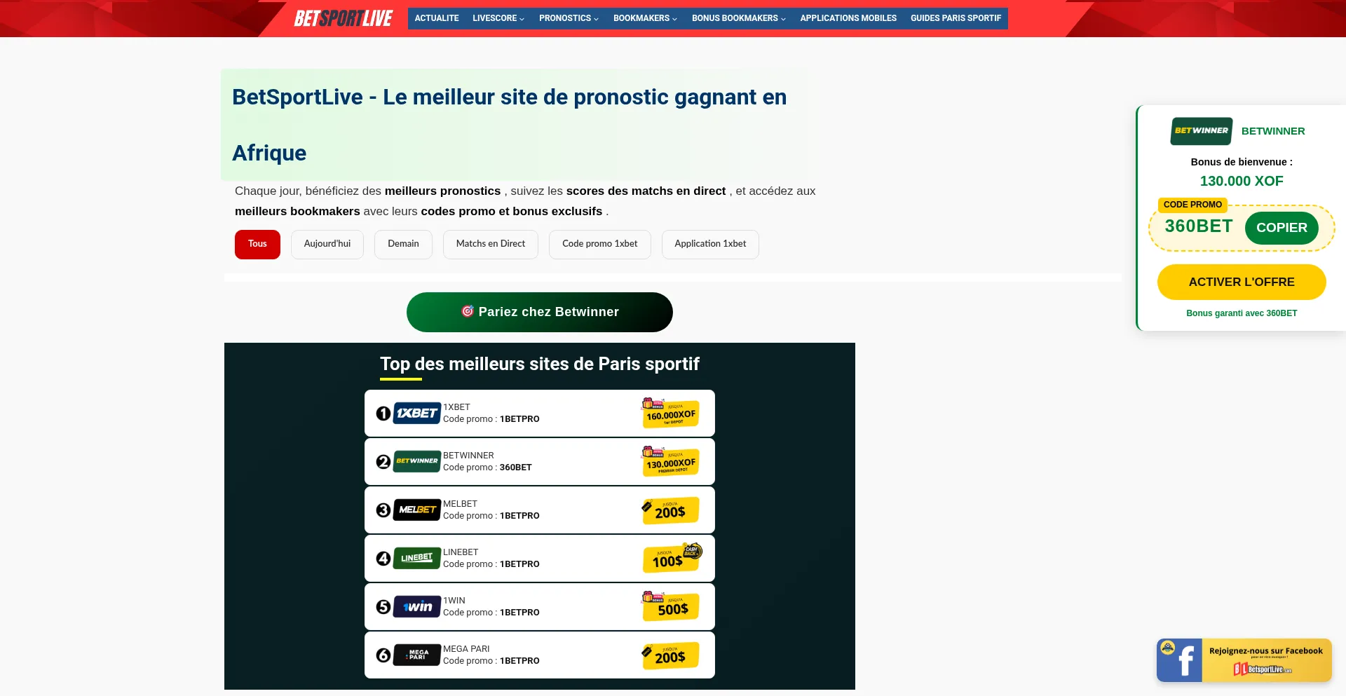 Betsportlive est le meilleur site de pronostic foot gagnant en Afrique. Profiter de nos pronostics, conseils d’experts et de stratégies 7jr/7.