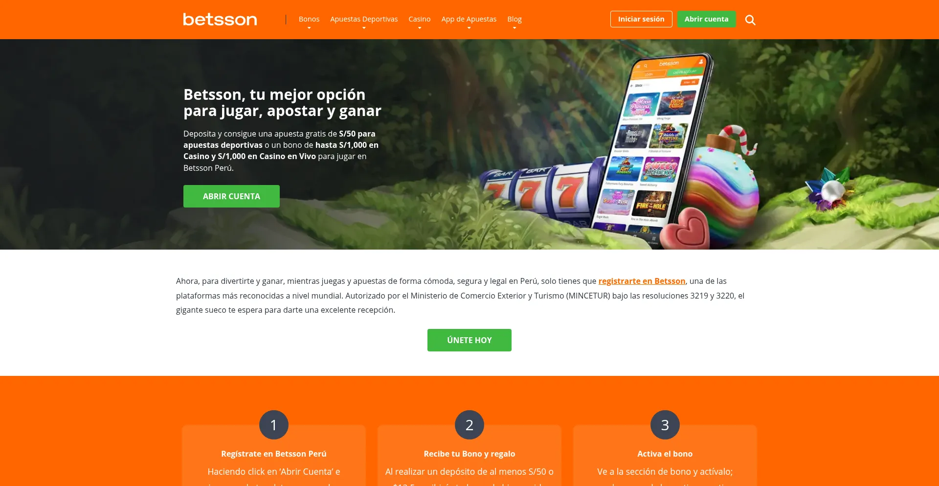 Betsson Perú | Regístrate y gana un bono de bienvenida de hasta ✅S/2.000 en Casino y ✅ Una apuesta gratis de S/50 en Deportes.