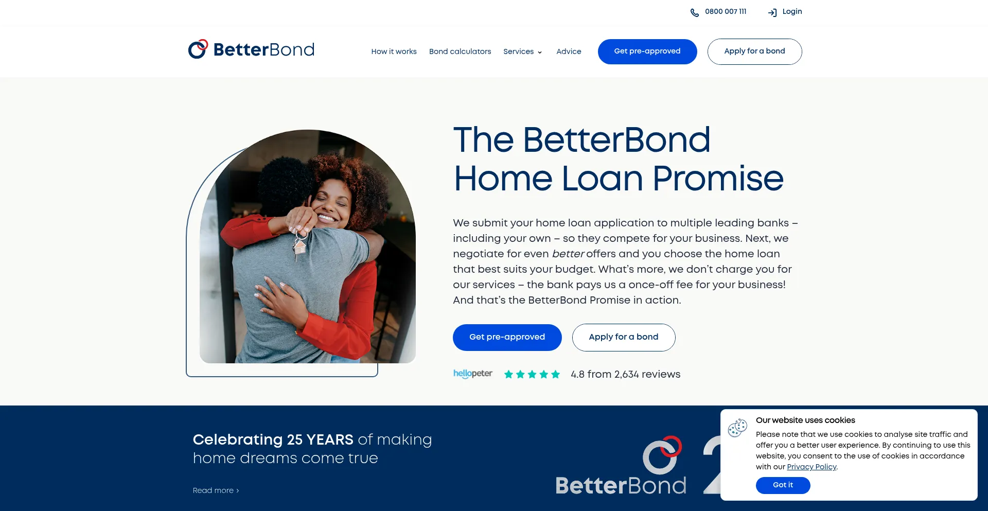 The website implements cookie consent mechanisms in compliance with privacy regulations such as GDPR or CCPA. This demonstrates that betterbond.co.za adheres to data protection standards and provides users with control over personal data collection practices.
