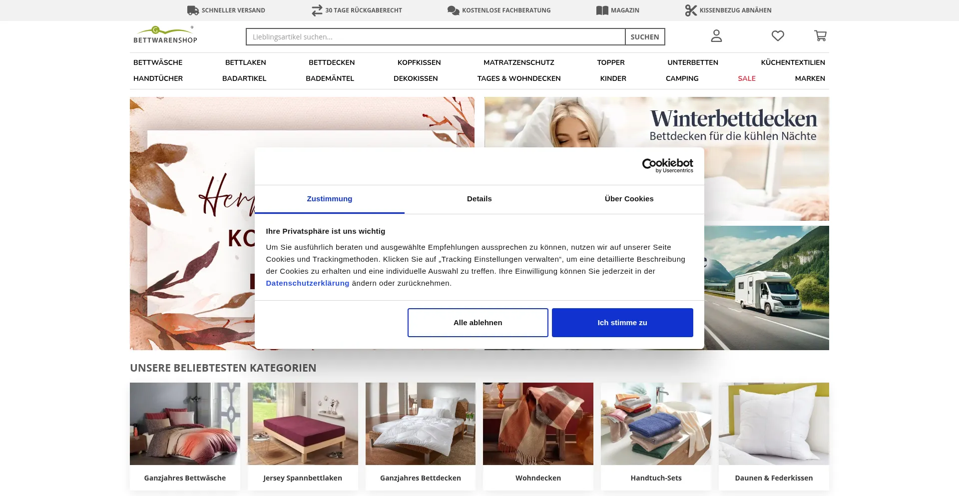 The website implements cookie consent mechanisms in compliance with privacy regulations such as GDPR or CCPA. This demonstrates that bettwaren-shop.de adheres to data protection standards and provides users with control over personal data collection practices.