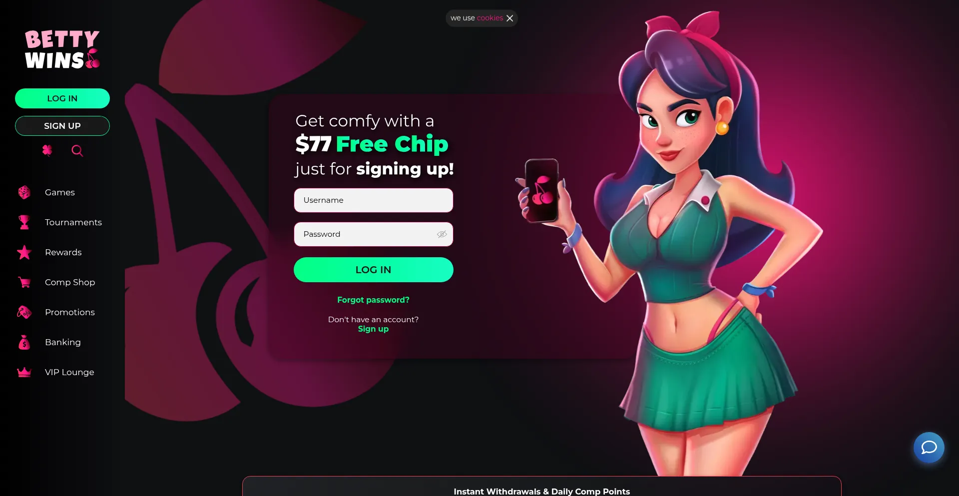 Join Betty Wins Casino for fast crypto withdrawals, secure play, and huge bonuses. Sign up today and start winning big at Betty Wins Casino!