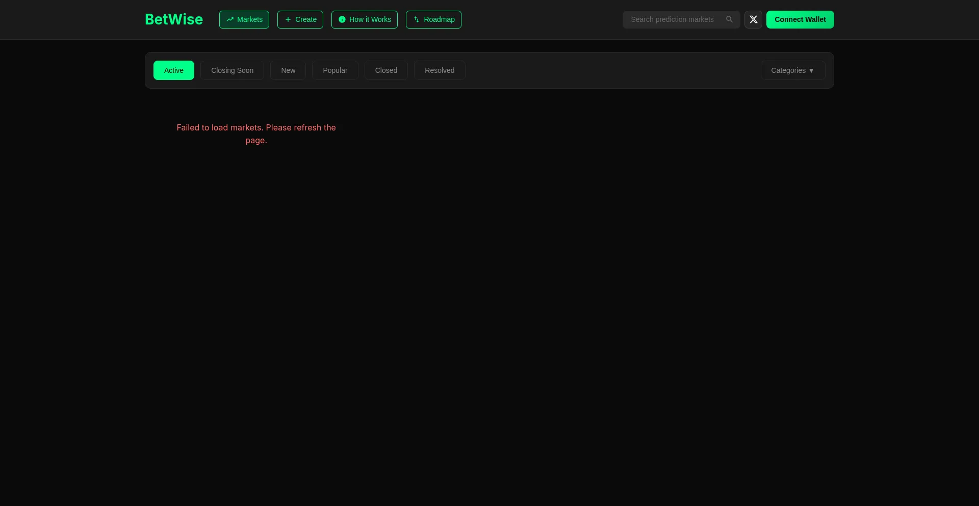 BetWise is a decentralized prediction market platform built on Solana where users and creators can earn SOL by betting on real-world events and creating popular markets.
