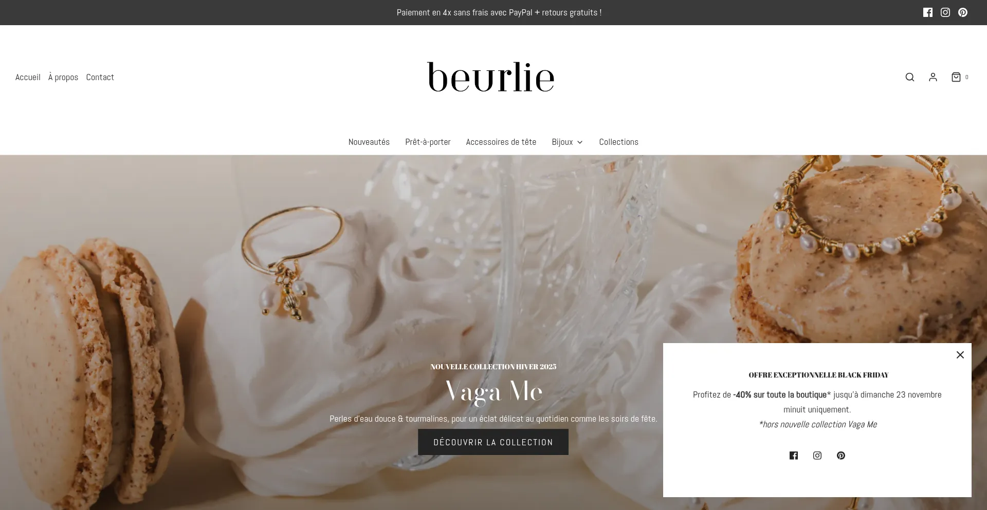 Beurlie : Marque de Prêt-à-porter féminin, d’accessoires de mode, bijoux et chapeaux made in Europe et de bijoux plaqué-or fabriqués en France.