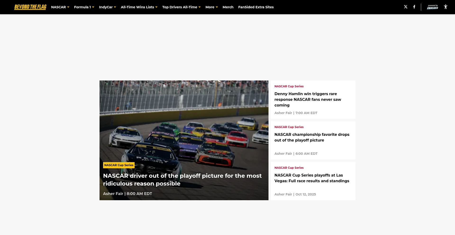 NASCAR, F1, and IndyCar news, rumors, updates, injuries, commentary, and analysis brought to you by Beyond the Flag.