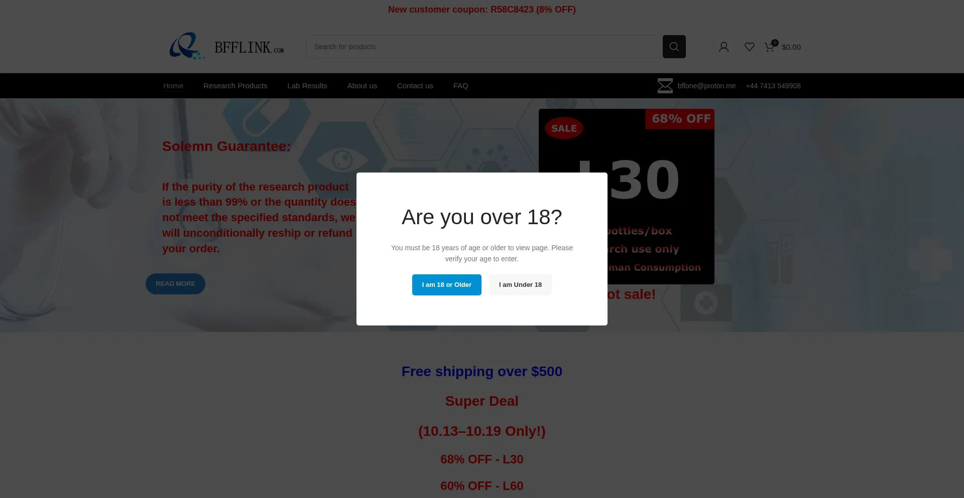 BFFLINK Products for Research, Development use only.Products are Not for Human consumption of any kind.