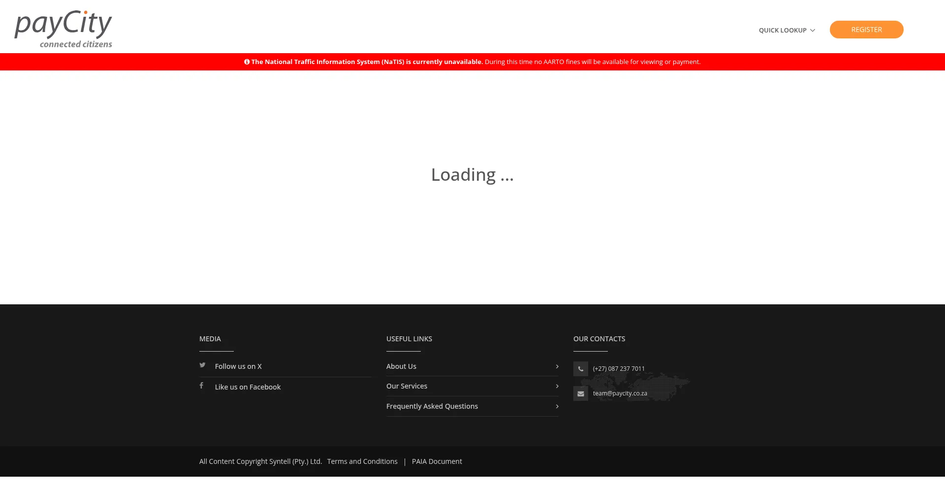 payCity allows you to view and pay your traffic fines, renew your car licence online, settle your municipal accounts, buy prepaid utilities