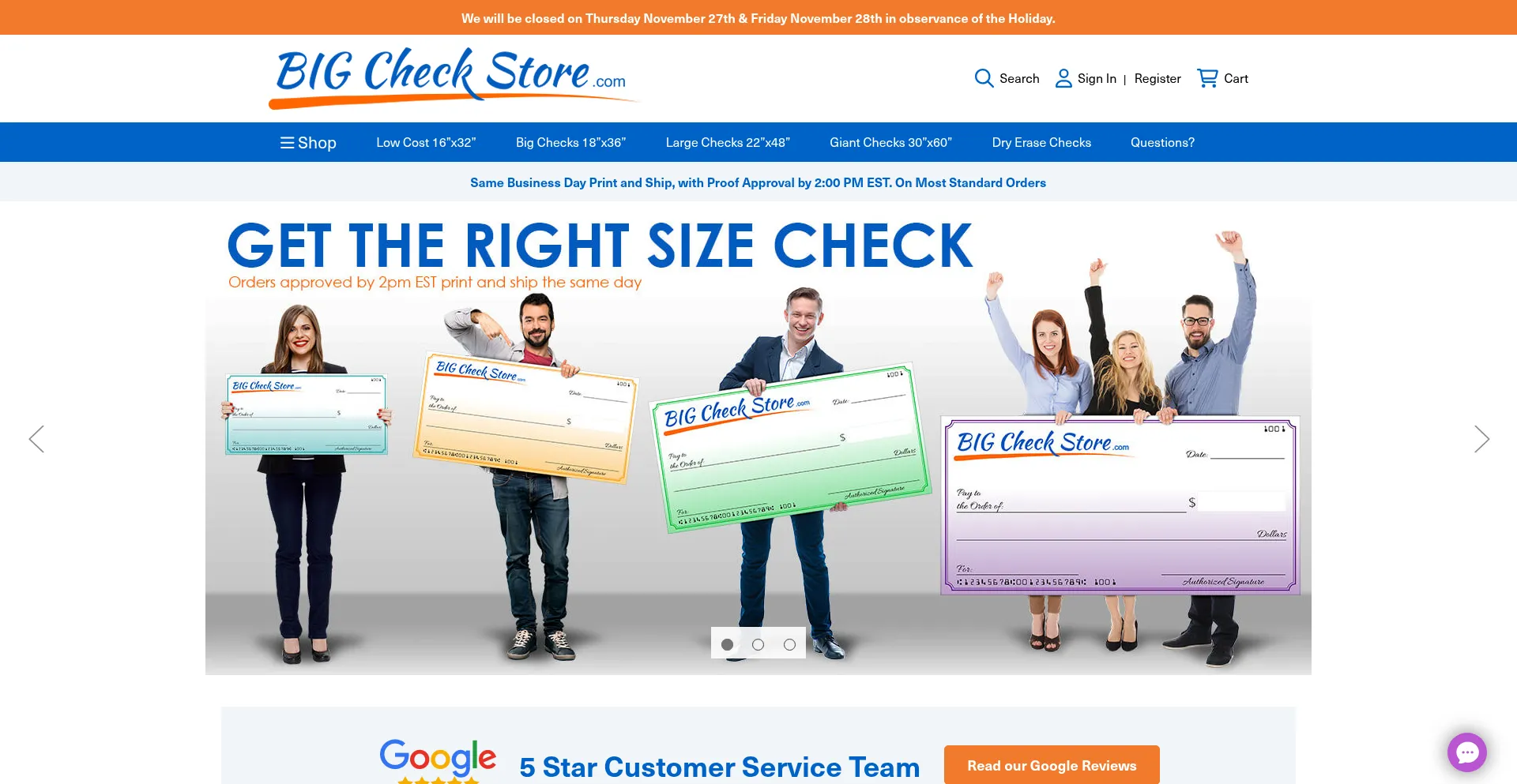 Big Check Printing | Same day shipping before 2pm EST | BigCheckStore