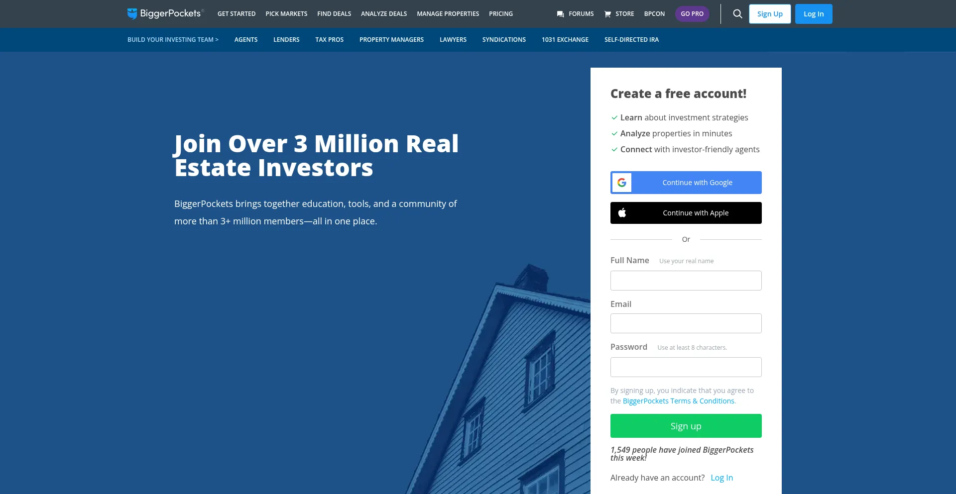 The biggerpockets.com website implements data collection forms requesting personal information including names, email addresses, phone numbers, or other sensitive details. Users should verify the legitimacy of it and review privacy policies before submitting personal data.