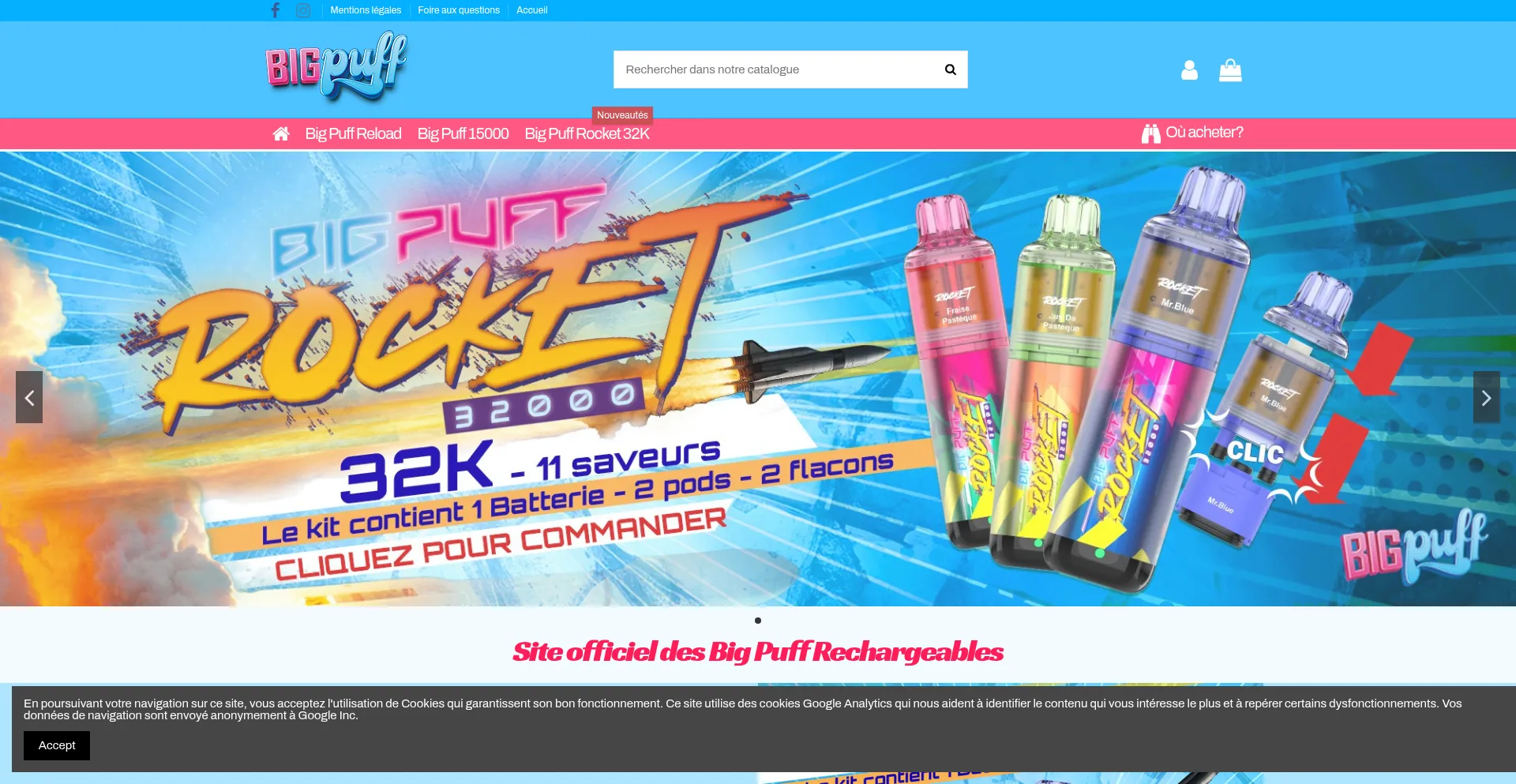 Acheter des puffs ou cigarette electronique jetable ou rechargeable avec ou sans nicotine directement sur BigPuff.fr. Les puffs les plus vendues en ce moment. Retrouvez plus de ...