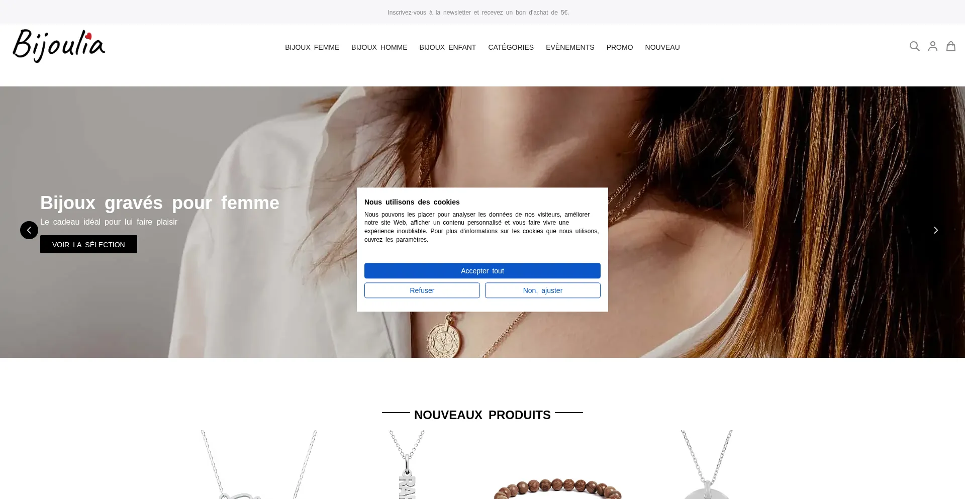 Bijou personnalisé pour tous les gouts et budgets : bracelet, bague, pendentif, porte-clé. Votre bijouterie en ligne vous propose des bijoux gravés sur Bijoulia fr