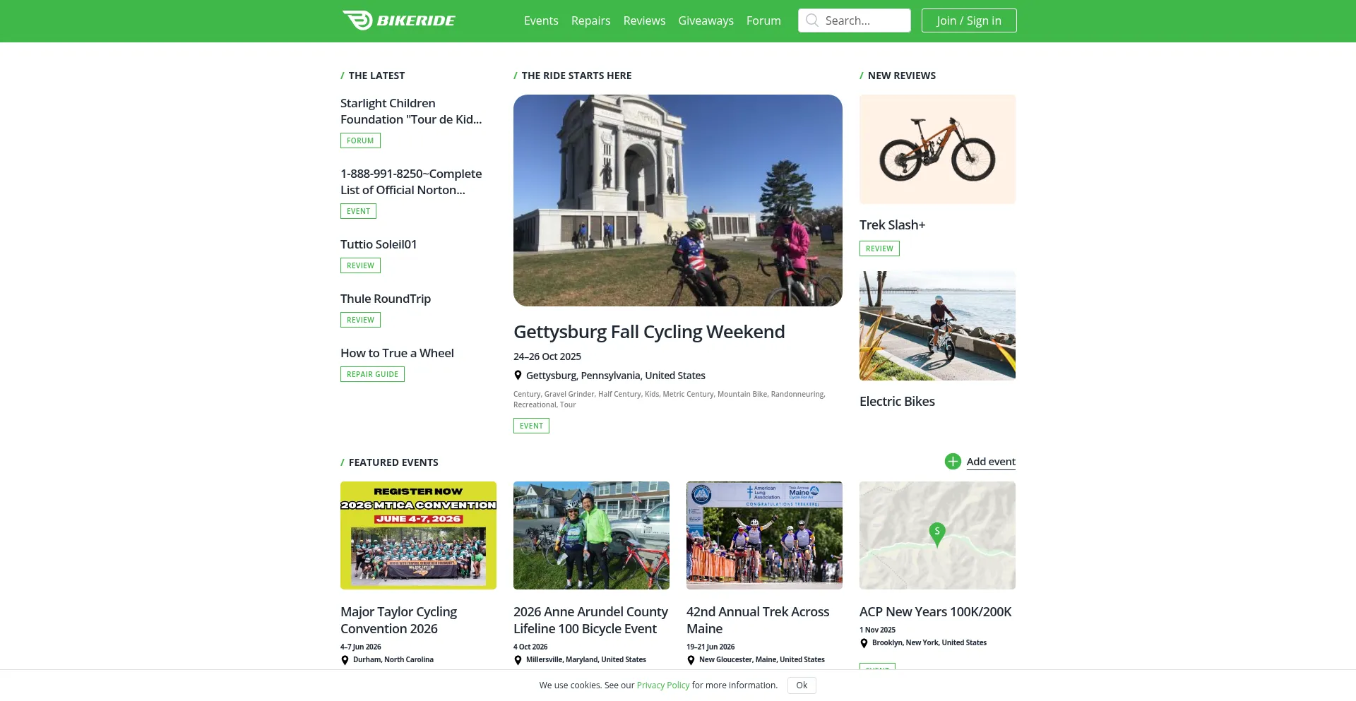 BikeRide - Cycling Events Calendar, Forum, Repairs and Reviews