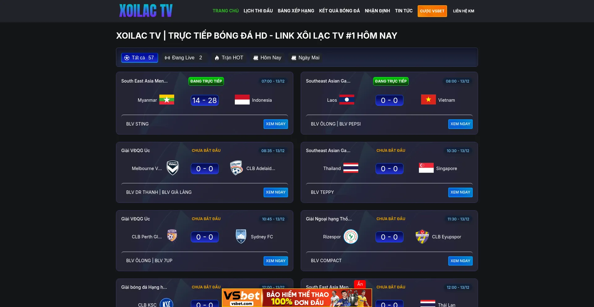 Xoilac TV trực tiếp bóng đá HD hàng đầu Việt Nam, đường truyền ổn định, đa dạng link trực tuyến, đa dạng giải đấu, BLV chuyên môn cao v�...