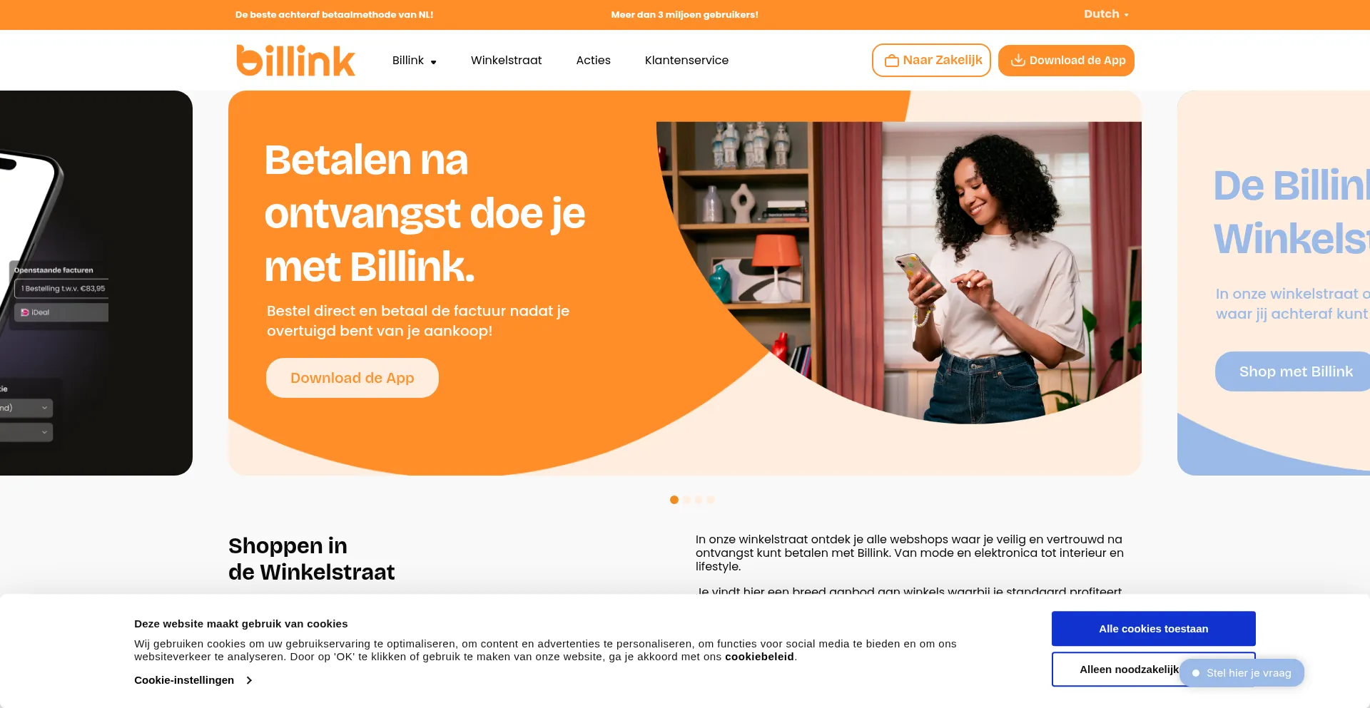 The website implements cookie consent mechanisms in compliance with privacy regulations such as GDPR or CCPA. This demonstrates that billink.nl adheres to data protection standards and provides users with control over personal data collection practices.