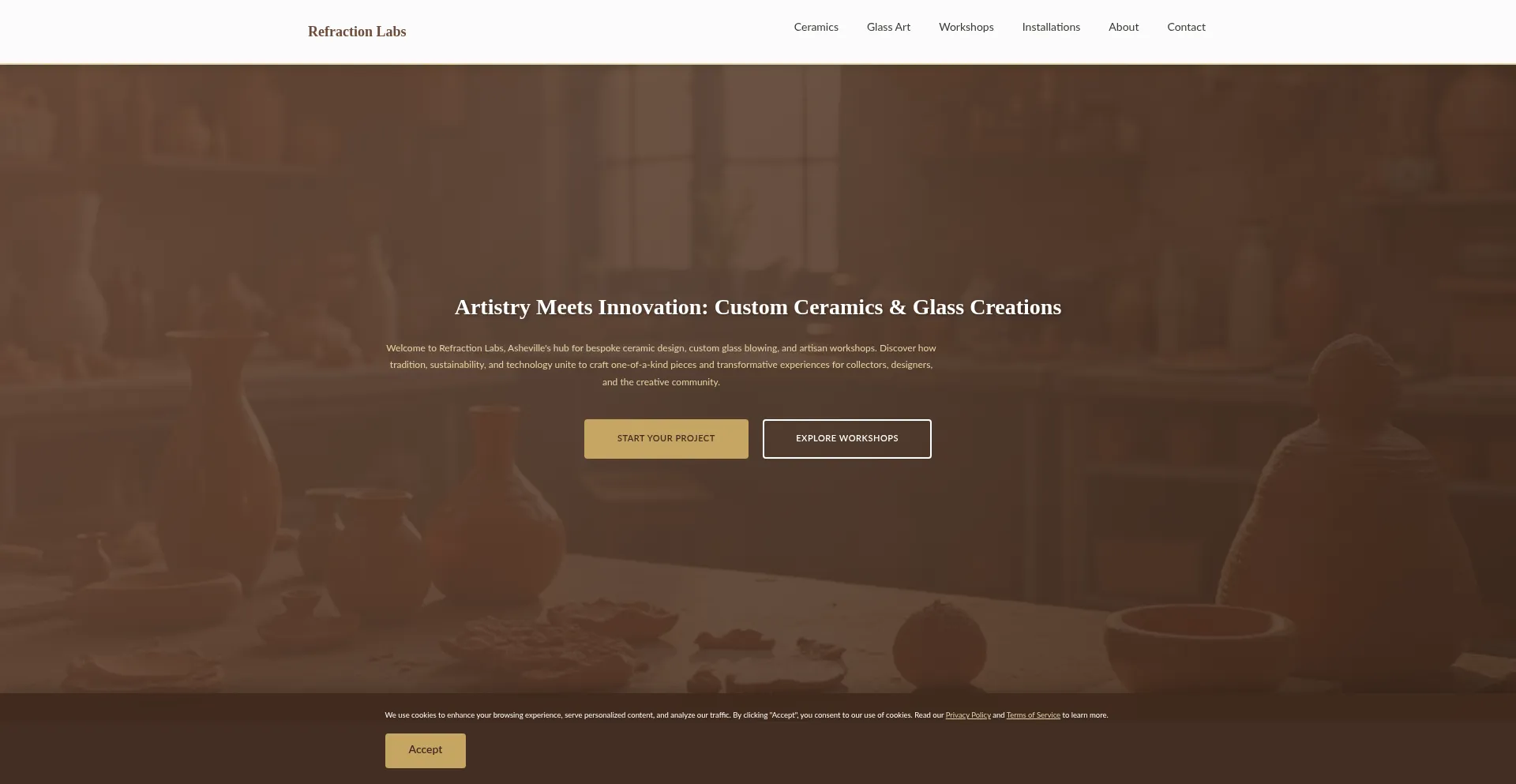 Refraction Labs - Asheville's premier studio for bespoke ceramic design, custom glass blowing, pottery workshops, and art installations. Sustainable, innovative craftsmanship co...