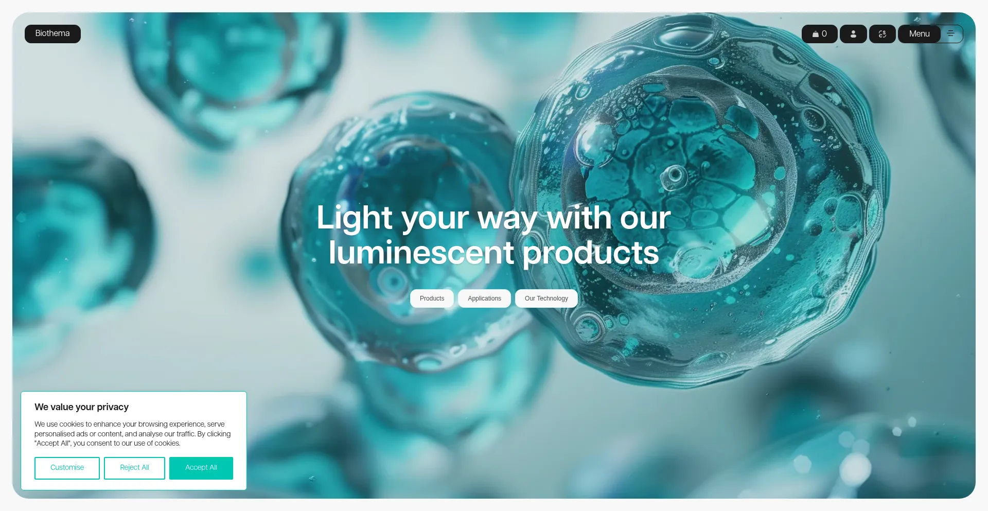 The website implements cookie consent mechanisms in compliance with privacy regulations such as GDPR or CCPA. This demonstrates that biothema.com adheres to data protection standards and provides users with control over personal data collection practices.