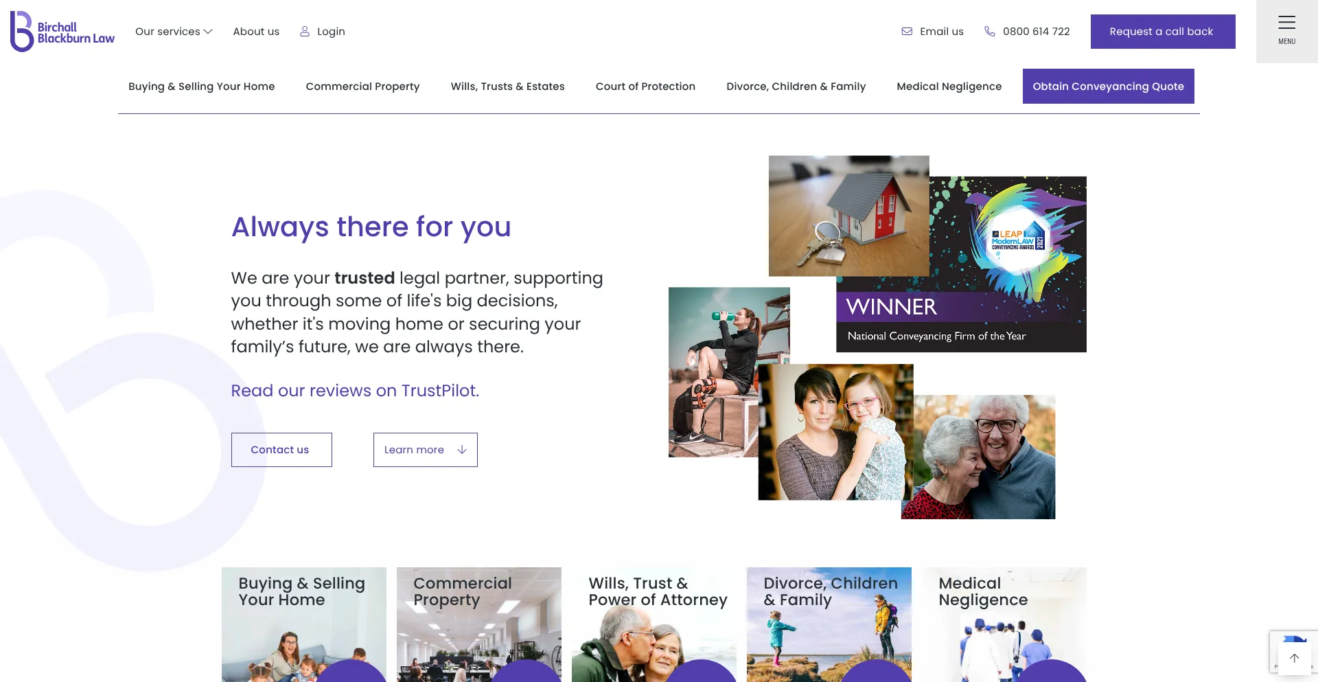Birchall Blackburn Law · Providing Legal Services For Over 70 Years · Commercial Property · Family Law · Wills, LPA & Probate · Conveyancing