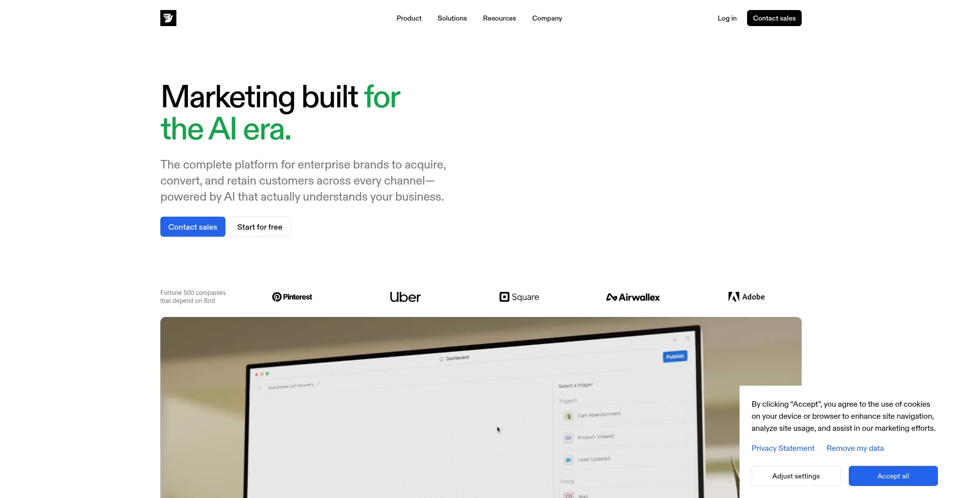 The bird.com website uses Google Tag Manager to add and update tracking tags on its website.