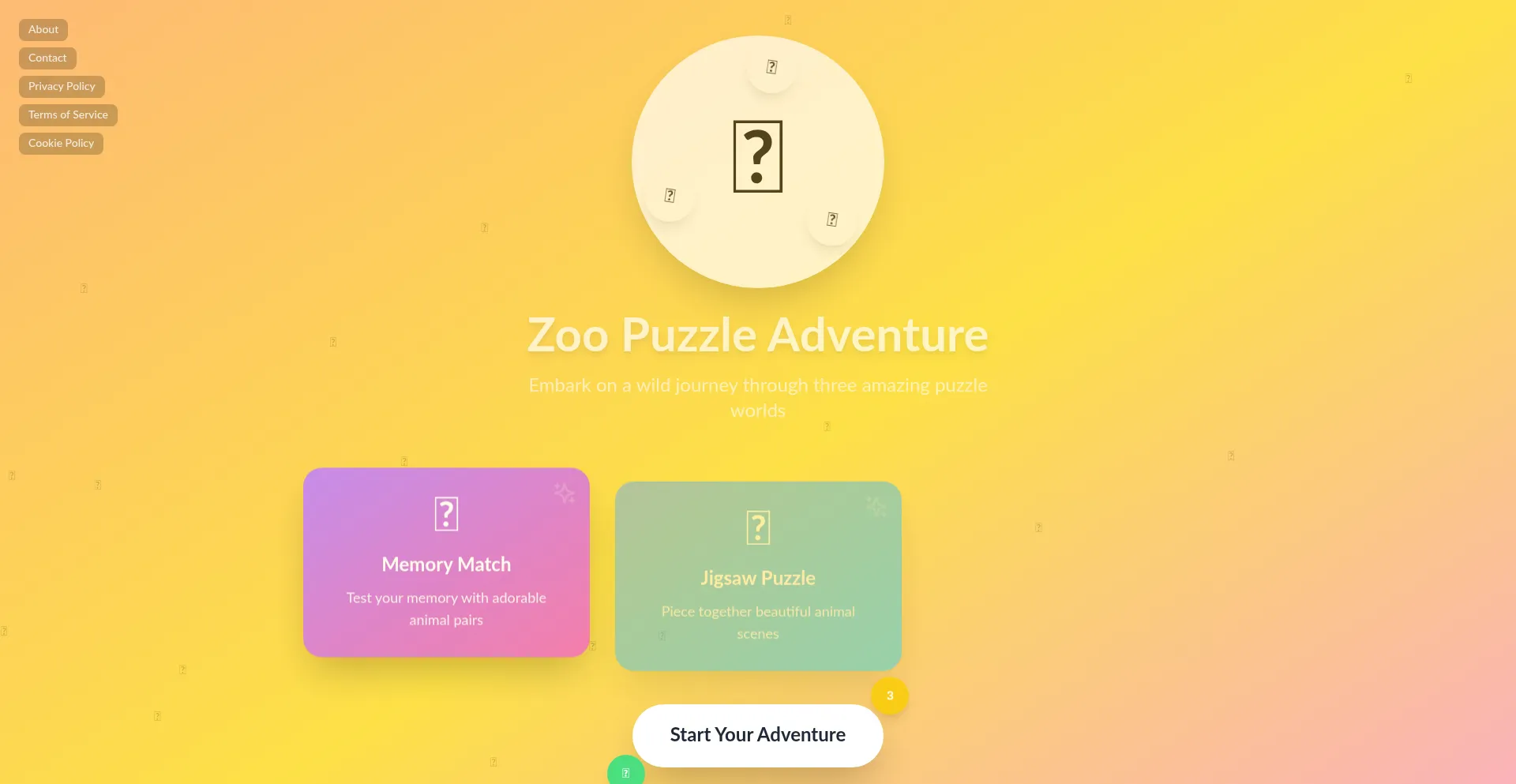 Play 3 exciting zoo animal puzzle games! Memory match, jigsaw puzzles, and habitat sorting. Educational, safe, and fun for all ages. No downloads required!