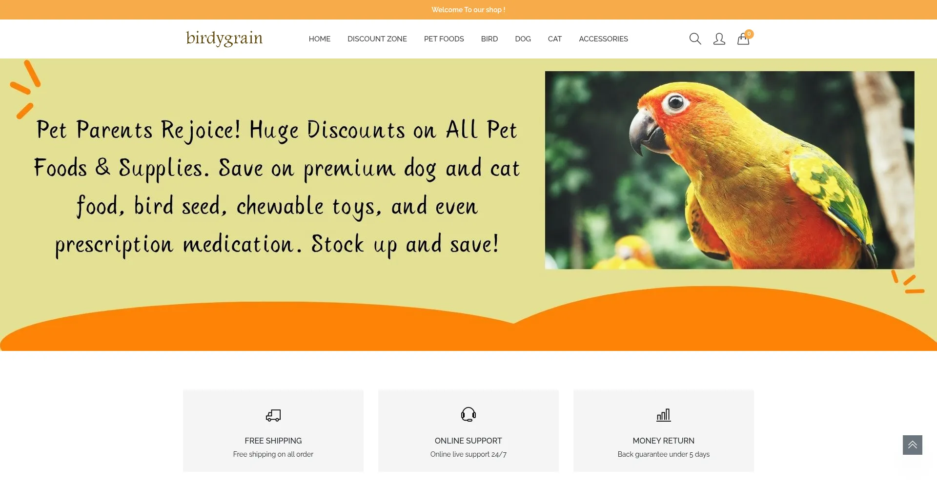 Explore our pet supplies for every need. Find premium dog food and cat food, cozy apparel, and durable chewable toys. Discover our Discount Zone for great deals on parrot treats...