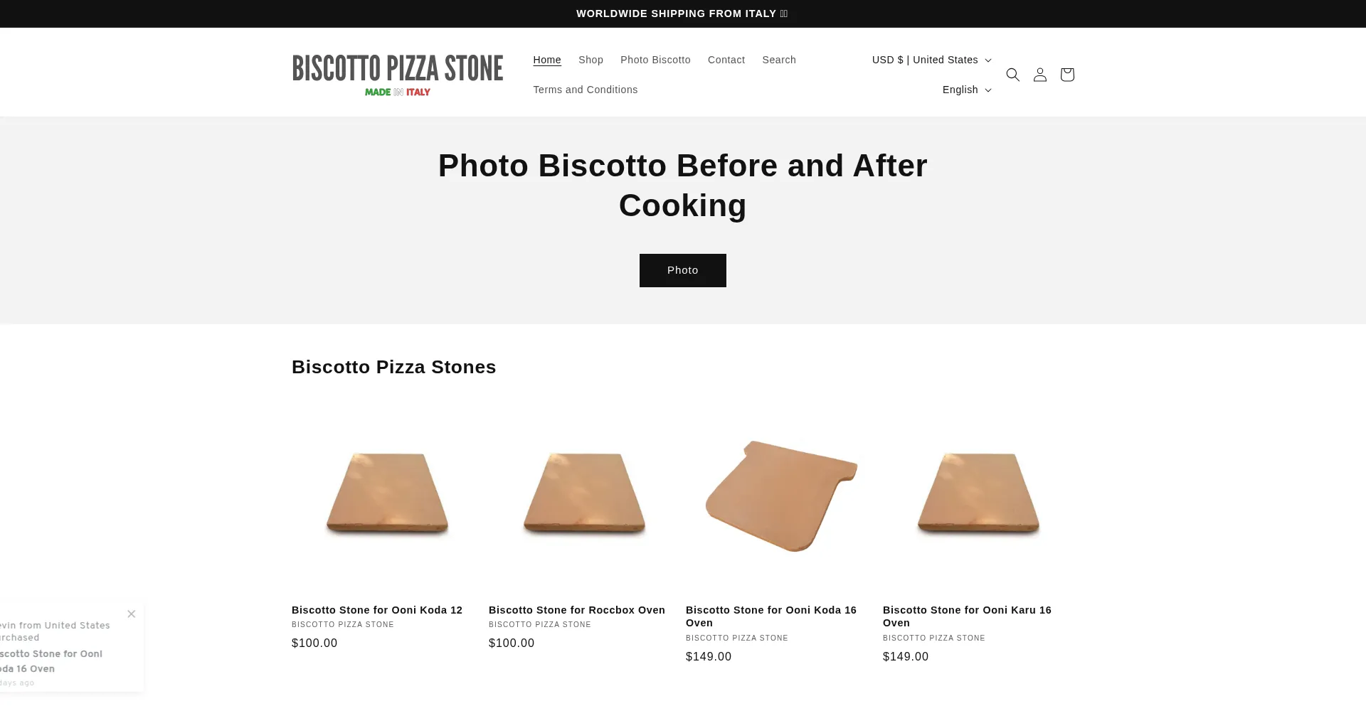 Our analyzer determines that website biscottopizzastone.com is using Shopify CMS. Shopify is a popular e-commerce platform, powering around 4.4% of websites globally.