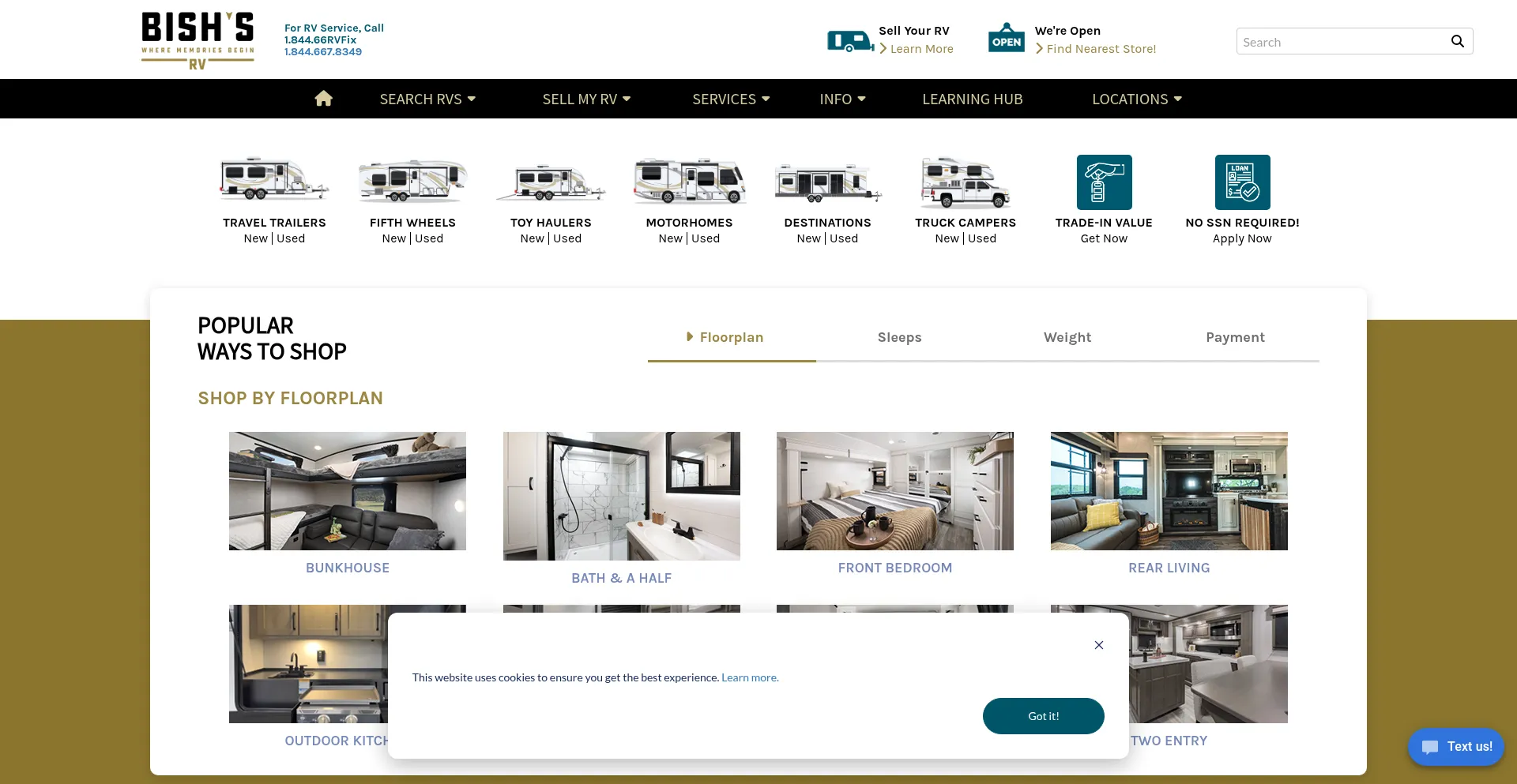 Bish's RV is America's top RV Dealer for travel trailers, motorhomes, camper vans, fifth wheels and toy haulers from Jayco, Newmar, Grand Design, Forest River, Prime Time, Keyst...
