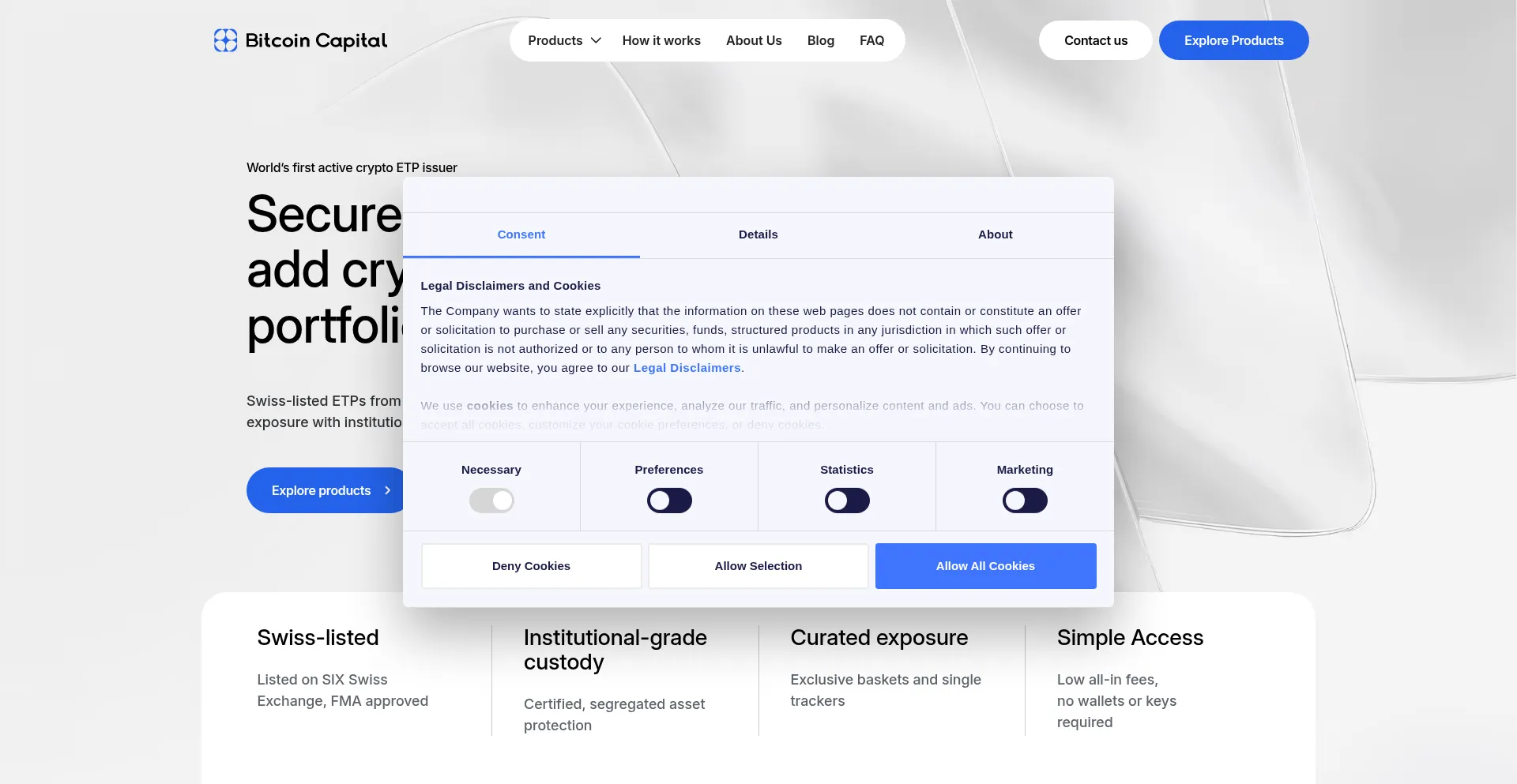 Bitcoin Capital offers Swiss-listed crypto ETPs, providing investors secure, actively managed digital asset portfolios accessible through traditional brokers.